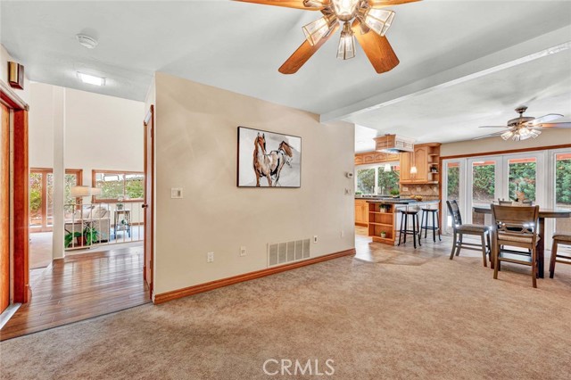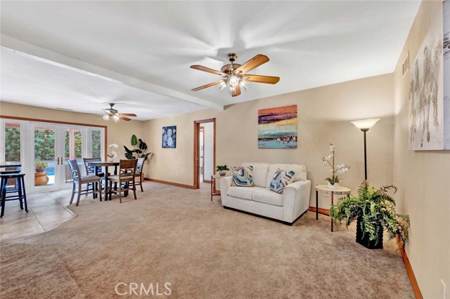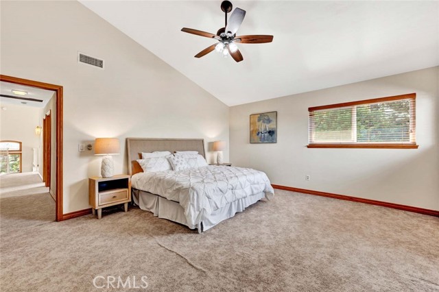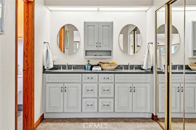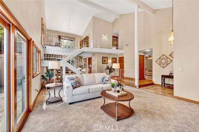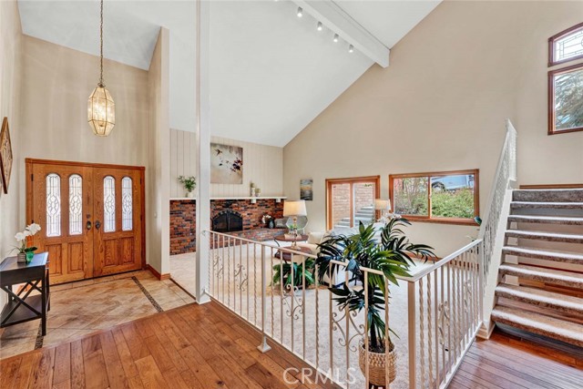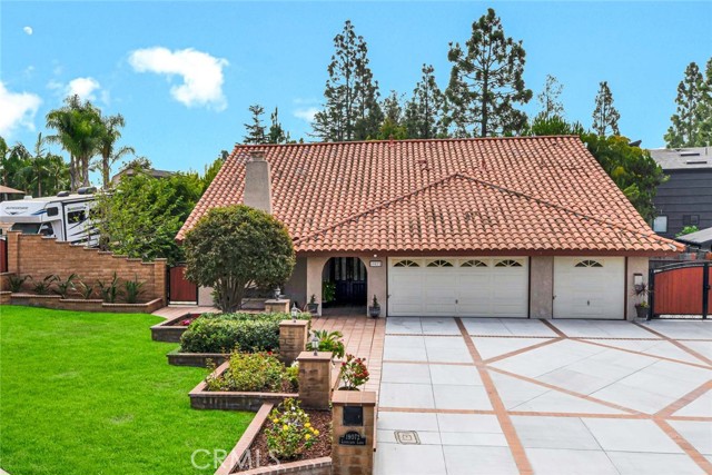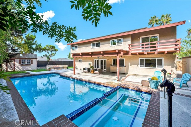 A truly rare find in YL,this exquisite nearly 3,000 sq.ft. residence sits on an expansive 15,000 sq.ft. lot at the very end of a quiet,private cul-de-sac. The curb appeal is unmatched.A triple-wide,freshly poured concrete driveway w/brick inlays leads to a 3-car garage boasting built-in storage across the entire width of the garage.Step thru double doors & into grand living room w/soaring cathedral ceilings,wall-to-wall brick fireplace.Tons of Natural light pours thru large windows & sliding glass doors.Hardwood floors flow from hallway into formal dining room,accented by open beam ceilings,pool views & built-in speaker system.The gourmet kitchen was fully remodeled w/custom hardwood cabinetry w/pullouts & Lazy Susan,black granite countertops,designer tile backsplash,S/S GE oven,KitchenAid 5-burner cooktop & microwave,Bosch dishwasher & S/S sink w/ upgraded fixtures,opening to a cozy breakfast nook & a large family room & French doors w/side vents that invite in Yorba Linda's gentle evening breezes.Downstairs also includes a spacious bedroom w/ its own private entry thru a sliding glass door — perfect for guests or multi-generational living.Adjacent is 3/4 bath & laundry room featuring sink,hardwood cabinetry & utility storage.Upstairs,a loft & private balcony provides the perfect retreat or home office.The primary suite is a Showpiece:vaulted ceilings,lighted ceiling fan & a fully remodeled master bath w/ dual sinks,upgraded fixtures & walk-in shower w/ tile insets & built-in bench.The dual-entry massive master closet has custom organizers & mirrored wardrobes for exceptional storage.Energy efficiency abounds w/ a paid-off solar system,Lennox high-efficiency HVAC & whole house fan.The backyard is a private entertainer's dream:A sparkling pool/spa anchor the space,enhanced by new tile,diving board & multiple seating areas surrounded by lush privacy landscaping.Pool features new equipment — heater,controller & internet-enabled remote control system.The 8-person spa,a fire ring w/ semicircle seating for 10 & covered patio,built-in speakers & pass-thru window make this backyard the perfect venue for gatherings.Solar heating for pool & 2 large sheds — one 15'x9' could be for storage or dollhouse & another 10'x6' for tools or toys.Over $350,000 invested in improvements,including:Roof replacements,Vinyl windows/sliders & insulation.Nestled among other estate-caliber homes,this residence offers unmatched privacy,quality craftsmanship,feeding best of PLA/Linda schools.