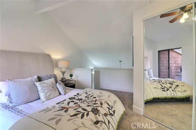 Welcome to Your Peaceful Retreat in Fullerton! Discover this beautifully updated one-bedroom loft-style condo in the highly desirable Quail Ridge community on Pine Creek Circle. With soaring ceilings and abundant natural light, this upper-level home feels bright, open, and airy from the moment you walk in. Recent upgrades include fresh interior paint, new carpet, and modern bathroom vanities with mirrors. The spacious living area features sleek laminate flooring and opens to a private balcony with a lighted storage closet — perfect for relaxing or entertaining. Upstairs, the loft bedroom offers comfort and privacy, complete with its own balcony, creating the ideal spot to unwind after a long day. Additional highlights include a convenient half bath on the main level, in-unit laundry, and covered carport parking. The Quail Ridge community offers a resort-like atmosphere with tranquil streams, lush landscaping, a sparkling pool, and a soothing spa. Centrally located just minutes from Cal State Fullerton, the 57 Freeway, Craig Regional Park, and Brea Mall, you'll enjoy easy access to top dining, shopping, and entertainment. Whether you're a first-time homebuyer, downsizer, or investor, this condo is a hidden gem you won't want to miss!