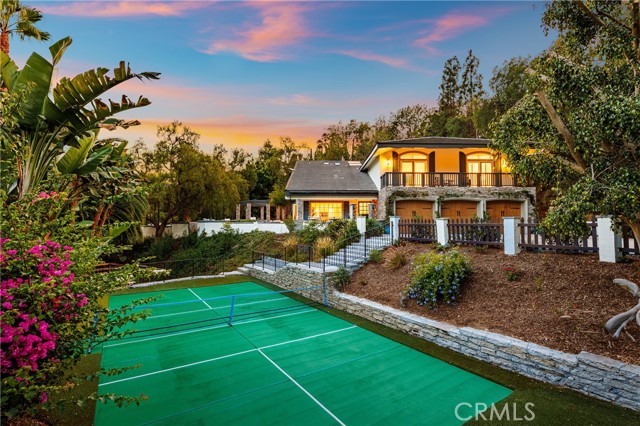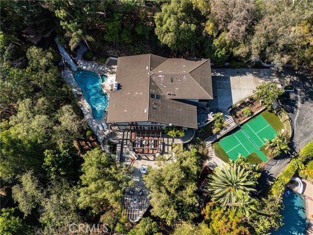 Your own private oasis awaits in the coveted Lemon Heights area of North Tustin. Have you have ever thought of embracing an exquisite lifestyle where you are surrounded by nature's grandeur, yet minutes away from all the modern conveniences . . . . living amongst a plethora of mature trees & landscape, on a sprawling 33,900+ Sq. Ft lot with these gorgeous vistas available from nearly every window, door and vantage point? How about the thought of enjoying a private, resort-inspired pool complete with waterslide, plenty of deck space for guests and lounging, and a gorgeous outdoor entertaining pavilion that effortlessly hosts small get-togethers or grand soirees? How about a gated driveway at the end of a private street, where parking numerous vehicles will not be a concern? ALL of this is just the beginning at 1761 Lemon Terrace. Offering 5 roomy bedrooms (one down), plus office and 5 1/2 baths, you'll relish the graciousness of this approx. 4,182 sq. ft. residence. Absolutely flooded with natural light, this is a home to experience. Soaring ceilings with wood beam detail, dual communal areas both with direct access to the incredible outdoor environs, two cozy fireplaces (family room and primary), and a nearly new kitchen with all the bells & whistles. On the second level, you'll find a primary suite which is a sanctuary, hosting a large retreat, plenty of closet space, a remodeled bath, and tree-top & pool views. All secondary bedrooms are generous and well appointed. Three offer extended balcony access, which offers the ideal vantage point for appreciating your surroundings. Private Pool pavilion, complete with waterslide & play house. Private Pickleball court. Private kids park area complete with jungle-gym equipment. Private road in to and out of the property. This is a rare offering in a special location, which offers so much more than an ideal lifestyle. . . . . it's HOME.
