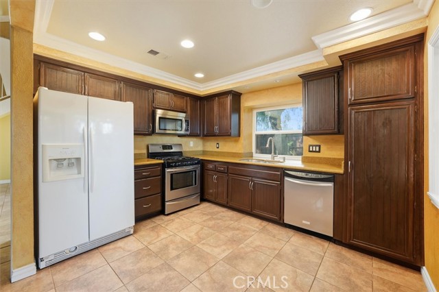 Welcome to Pamela Drive in the heart of Santa Clarita! This charming three-bedroom, two-and-a-half-bath home is nestled on a quiet cul-de-sac and offers approximately 1,439 square feet of comfortable living space. Inside, you'll find tile floors and newer dual-pane windows that bring in plenty of natural light. The updated kitchen features stainless steel appliances and granite countertops, making it a great space to cook and entertain. All three bedrooms are conveniently located upstairs. Crown molding throughout adds a beautiful custom look. Step outside to a lovely backyard designed for relaxation and fun, complete with flagstone walkways, a barbecue area, and an above-ground spa. HOA pool, spa, and park area located just around the corner. Low HOA dues with amazing amenities and NO MELLO ROOS TAX. Don't miss the opportunity to make this delightful home yours!