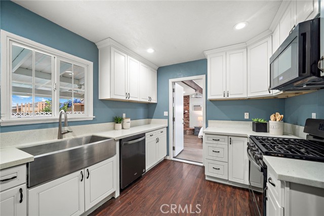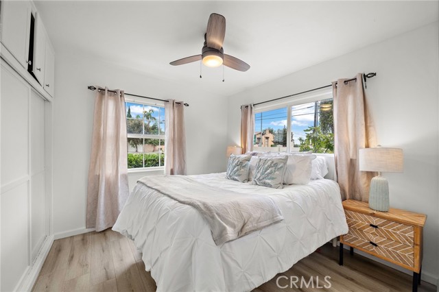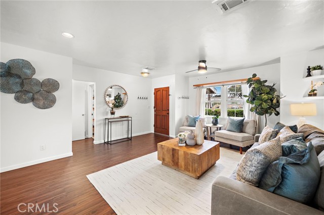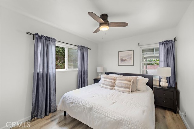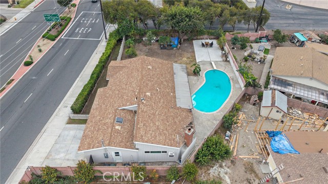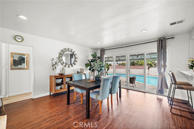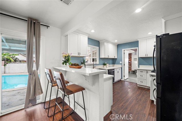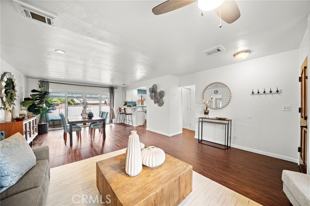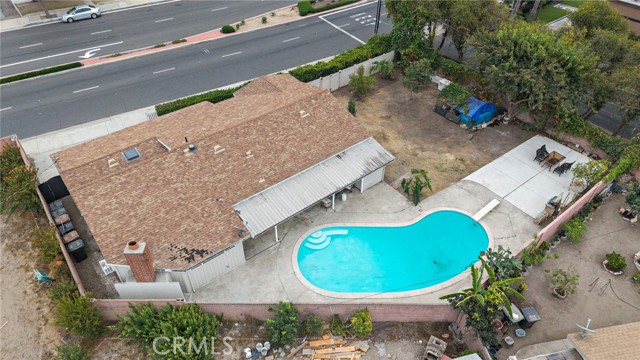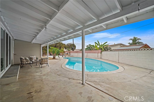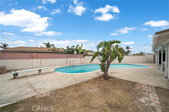 Absolutely unique and truly one-of-a-kind! This sprawling 1,572 sq. ft. single-level ranch-style pool home sits on an expansive 8,848 sq. ft. lot — ideal for adding an ADU or creating RV/boat storage. Featuring 4 bedrooms and 2.5 bathrooms, this beautifully expanded home is filled with thoughtful upgrades, including luxury vinyl wood flooring throughout, dual-pane windows and sliders, and remodeled kitchen and bathrooms. From the moment you arrive, the fantastic curb appeal will catch your eye — with fresh exterior paint, mature shrubs for privacy, a wide concrete driveway, and a welcoming covered front porch. Step inside to a spacious open-concept living and dining area, seamlessly flowing through French doors to your backyard oasis. The entertainer's dream backyard truly steals the show — complete with a sparkling pool, covered patio, and multiple fruit trees including moringa, passion fruit, avocado, Asian pear, fig, pomegranate, persimmon, and mulberry. Whether relaxing, entertaining, or planning a future ADU with a separate driveway, this space is a private retreat designed for California living at its finest. Back inside, the remodeled kitchen features quartz countertops and backsplash, a breakfast bar, 5-burner gas range, and a large stainless steel farmhouse sink. All four bedrooms are generously sized with ceilings fans, including a primary suite with a cozy fireplace, sitting area, and direct backyard access. The primary bathroom offers a walk-in shower with floor-to-ceiling tile, while the secondary bath includes a tub/shower combo. Additional highlights include a 220V EV charger, upgraded 200-amp electrical panel, tasteful designer paint, recessed lighting and direct-access to two-car garage. Ideally located near Garden Grove Sports & Recreation Center, Atlantis Park, The Promenade Plaza, SteelCraft, Historic Main Street, Little Saigon, and Garden Grove Main Library — plus just 5 miles to Disneyland and 10 miles to Orange County's iconic beaches — this home offers the very best of Southern California living. Don't miss this rare opportunity!