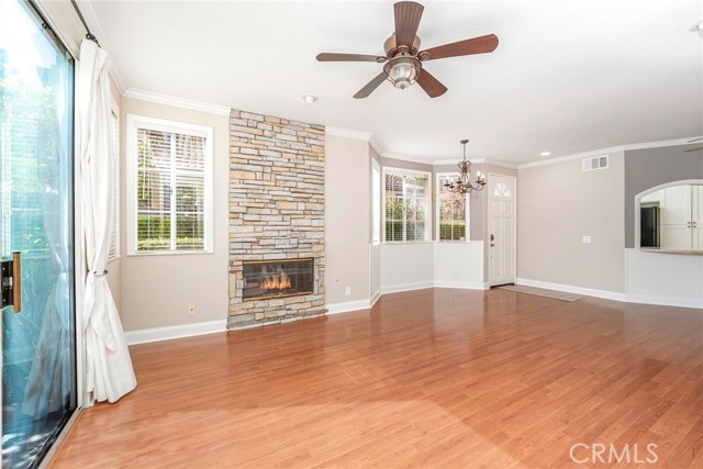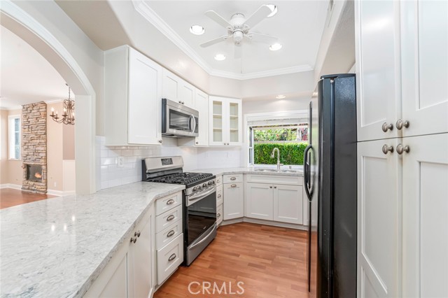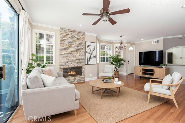 Beautiful single-level condominium located in the highly desirable community of Aliso Viejo. This bright and open home offers 2 bedrooms, 2 bathrooms, and an attached one-car garage with ample storage. The remodeled kitchen features granite countertops, updated cabinetry, and a breakfast bar that opens to the dining and living area. The spacious great room includes a cozy fireplace and sliding doors leading to a large private patio that backs to a tranquil lawn and pocket park. The primary suite offers a walk-in closet, a remodeled bathroom with a large soaking tub/shower combination, and direct patio access. Additional features include inside laundry with washer and dryer included, updated bathrooms, and direct gate access to the nearby pocket park. The community features 2 pools, spas, and a walking path. This property combines comfort with resort-style amenities. Conveniently located near Laguna Beach, Dana Point, shopping centers, dining, parks, and hiking/biking trails. Enjoy all that Aliso Viejo has to offer in this beautiful move-in-ready home.