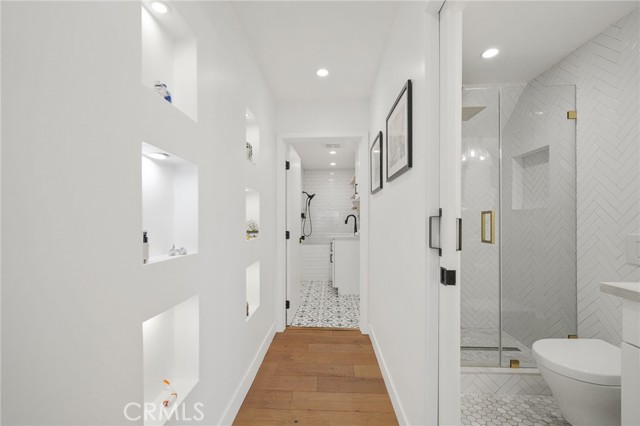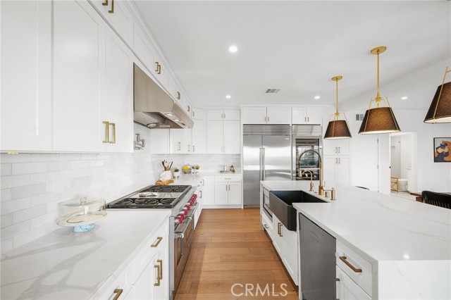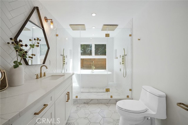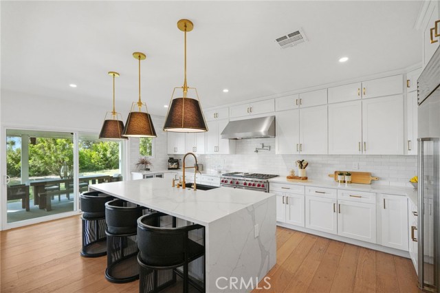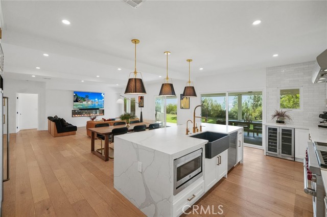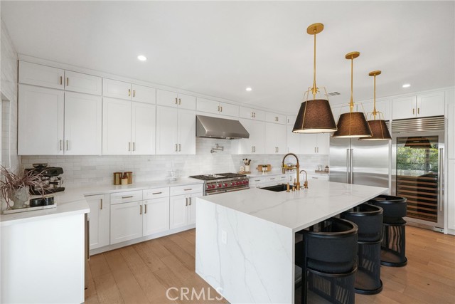 Welcome to an extraordinary sanctuary in the coveted foothills of La Canada Flintridge. This extraordinary home embraces modern sophistication with timeless serenity. This newly reimagined contemporary masterpiece invites you into a world of elegance, light, and breathtaking mountain views. Step through the sun-filled, vaulted entryway and into an open, airy living space framed by walls of glass, where natural beauty becomes an extension of your home. The living and dining areas flow effortlessly together, centered around a sleek fireplace that sets the stage for intimate evenings and stylish gatherings. The designer chef's kitchen is a vision of perfection, anchored by a grand center island with farmhouse sink, dressed in exquisite quartz countertops, radiant subway tiles, and fitted with top-of-the-line wine storage, Sub-Zero and Wolf appliances. Beyond the glass doors, over 600 square feet of covered patio ideal for effortless indoor-outdoor living. Under soft recessed lighting and gentle ceiling fans, savor tranquil mornings or host elegant soirees framed by sweeping, unobstructed mountain views. Your retreat continues in the glamorous primary suite that feels like a private haven featuring an entire wall of custom closets with an integrated Samsung AirDresser and a spa-inspired bath designed to indulge your senses, complete with dual vanities and an expansive glass shower. A primary suite that feels like a luxurious hotel spa. Conveniently located downstairs is another bedroom that is perfectly fit for an office. Upstairs you will be met with the perfect floorplan of three additional bedrooms, two stunning bathrooms and an extensive sunroom ideal for a play room, entertainment room or just a space to take in the gorgeous views of the mountains. This home has it all: completely upgraded with taste and elegance. Located within the highly acclaimed La Canada Unified School District and close to parks, hiking trails, and local shops, this home delivers luxury living with everyday convenience. Welcome HOME!