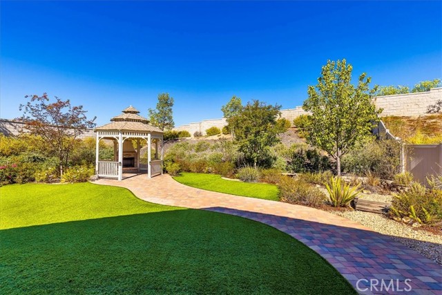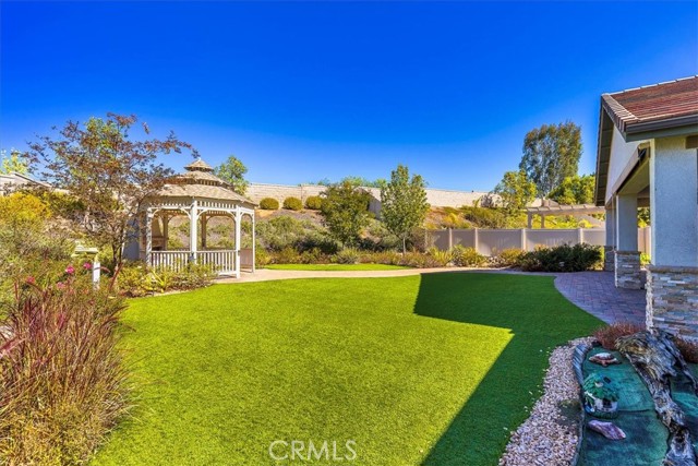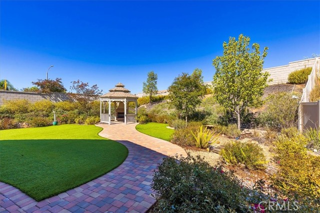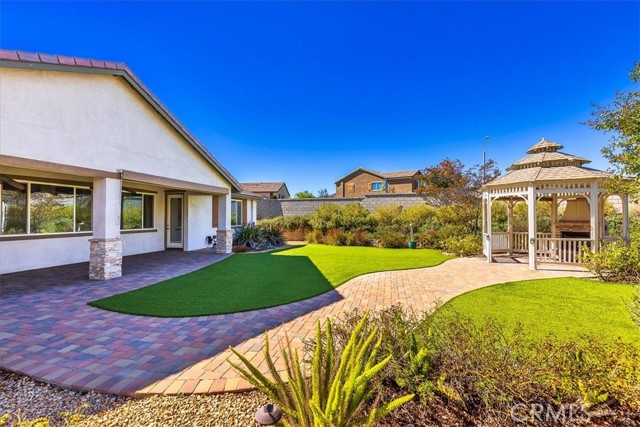 Welcome to your Dream Home! This spacious and beautifully maintained 5-bedroom, 4-bath single story residence offers the perfect blend of comfort, elegance, and outdoor serenity. Situated on an over half an acre corner lot, on a cul-de-sac, with gated courtyard, the property boasts a lush, park-like backyard that is ideal for entertaining, relaxing, or enjoying nature right at home. Inside, you'll find a thoughtfully designed layout that offers an open floor plan, spacious living areas, and gourmet kitchen with walk in pantry, ample storage and large center island, perfect for family gatherings. The primary double door suite features a luxurious en-suite bath and walk-in closet, while additional bedrooms offer flexibility for guests, or hobbies. One room is currently an office with large built in desk and more. Perfect for the remote worker, personal office or homework/gaming station. Step outside to discover mature low maintenance landscaping, shaded sitting areas, and plenty of room for outdoor activities. Whether you're hosting summer barbecues or enjoying a quiet morning coffee in the Gazebo, this backyard is your private oasis. Side yard is complete with potting/gardening station and a large closed in storage shed with rolling barn door to store your gardening supplies and more. Don't miss the opportunity to own this exceptional property that truly has it all. Space, style, and a setting that feels like your own private park. Shopping, Restaurant and Freeway Convenient!