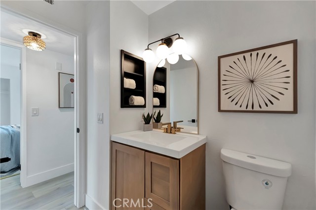Stylish Living in the Heart of La Palma! Welcome to your beautifully remodeled sanctuary where modern design meets everyday comfort. Step inside and be greeted by luxury vinyl plank flooring that stretches gracefully throughout the home, setting the stage for effortless elegance. The chef's kitchen shines with warm wood-tone cabinetry, dazzling quartz countertops, and brand-new appliances. It's a space that begs for both gourmet cooking and lively conversation. Soaring vaulted ceilings and walls of windows bathe the living areas in natural light, while a cozy fireplace adds just the right touch of warmth and charm. Retreat to your primary suite oasis, featuring a spa-inspired bath with stylish vanities and champagne-gold finishes. Enjoy all that the community has to offer with it sparkling pool and spa. This is more than a home — it's a lifestyle upgrade waiting for you. Don't miss out, schedule y9our showing today ~.
