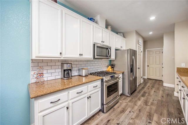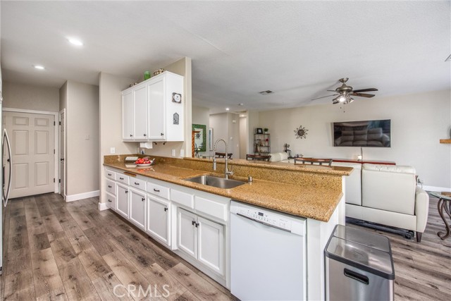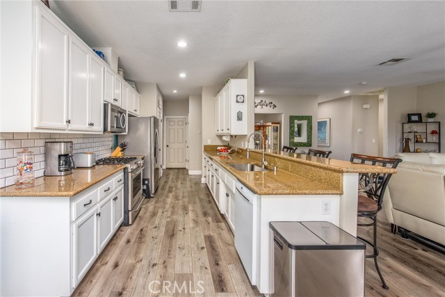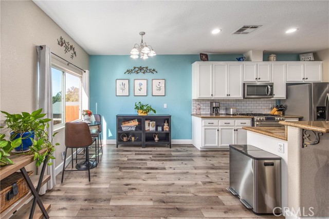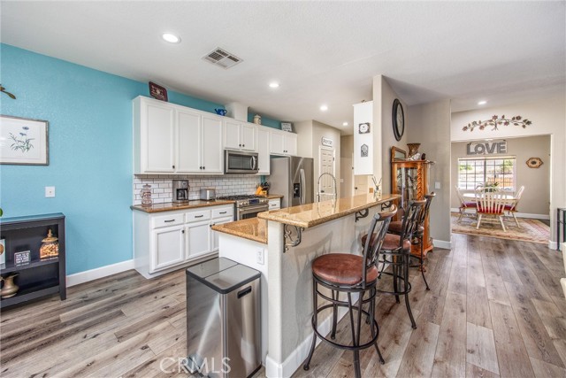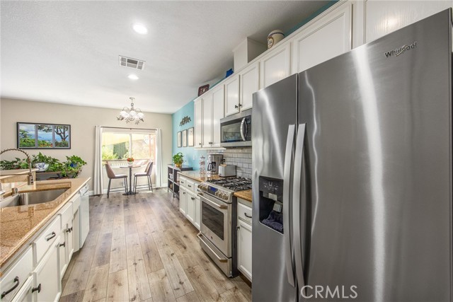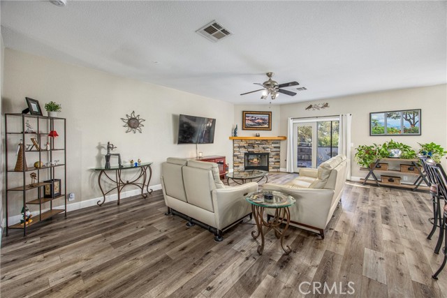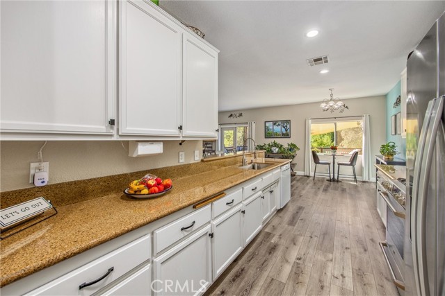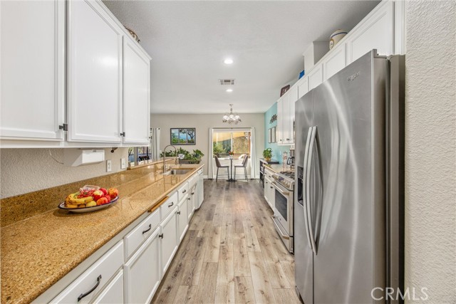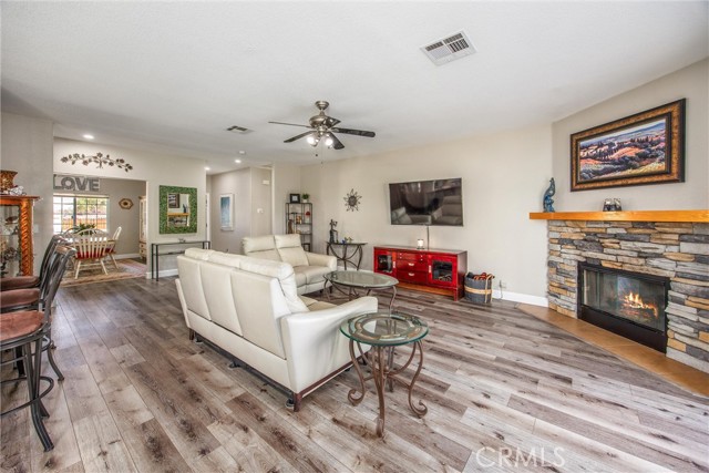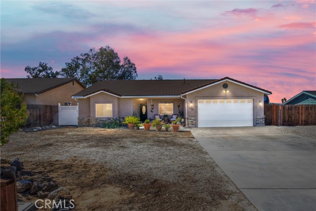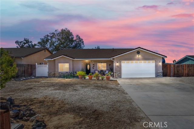 This is your opportunity to own a charming, single-story home on a spacious lot where style, space and serenity come together in a desired area in the city of Hemet, where you're surrounded by mountain views and open skies. This updated home includes a peaceful retreat with modern comfort and timeless charm. Step through the front door and feel the warmth of natural light filling over 1900sqft of beautifully refreshed living space. The bright, airy kitchen is a showstopper, featuring stainless-steel appliances, granite counter tops, abundance of white cabinetry and counter space, including a bar counter, food pantry and appliance pantry. The adjoining living and dining rooms are centered around a fantastic fireplace, the heart of the home, offering a cozy glow from every angle, the perfect setting to entertain friends and family or enjoy relaxing nights. French doors open up to your expansive deck featuring an open backyard with lots of trees for privacy, spectacular sunsets and where endless possibilities abound. The primary suite is a sanctuary of its own, with barn doors leading to his and her closets, granite counter tops, separate tub and Walk-in shower. Three spacious additional bedrooms offer plenty of room for family, guests, home office, gym and anything you can imagine. The home features new flooring and fresh paint, giving you a truly move-in-ready experience. Outside, you can enjoy the perks of breath-taking sunsets and lots of extra outdoor space for your toys. Enjoy the convenience of approximately 75' of RV parking, behind a gate, with 50-amp connections and excellent curb appeal. Whether you're hosting a summer BBQ or planning your dream backyard retreat, this property has the space to make it happen. The location, layout and style, this home checks all the boxes with competitive size and value in Hemet's dynamic market. Don't miss your opportunity to own this turnkey property. Schedule your private tour today or visit our open house on October 25-26.