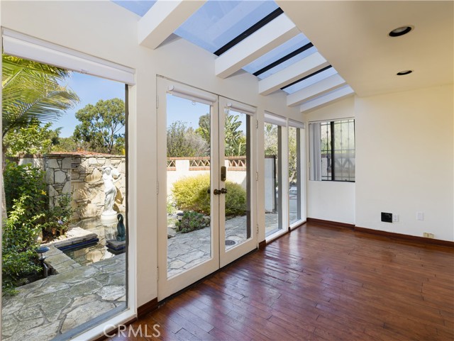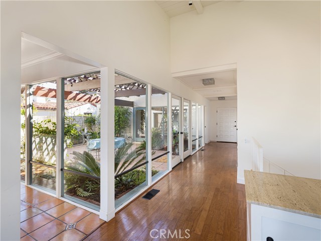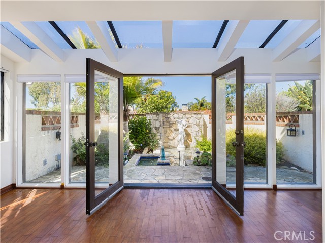 Fabulous Ocean View Home - This beautiful open light filled Malaga Cove home is an entertainer's dream. Enter into the foyer and through a glass "wall" hallway which looks out to the peaceful patio/courtyard. Then enter a spacious Living Room with ocean views and high ceilings, and proceed to the ocean viewing balcony. The adjoining Dining Room also has ocean views and built-in cabinetry. The sunny modern kitchen has a center island and breakfast area. There is a well-appointed Laundry Room off the kitchen. The primary suite with fireplace opens to the courtyard/patio. A second ensuite bedroom is also located on the entry level. Downstairs is a huge third ensuite Bedroom with an attached sunroom which opens to a reflection pool/courtyard. On this level you also find a 19'x8' Utility/Storeroom and attached 2-car finished garage with another Laundry Area. Superior location - a short walk to Farnham Martin Park with its Summer Concerts, the library, Malaga Cove Plaza restaurants & stores, Palos Verdes Golf Course, and the ocean bluffs with a path down to the beach. Award winning Palos Verdes Schools. Other features include: circular driveway, crown molding, 3 fireplaces, open floor plan great for entertaining, and a plethora of floor to ceiling glass brings abundance of natural light.