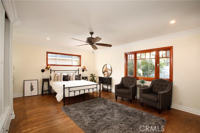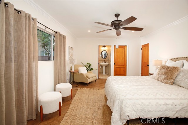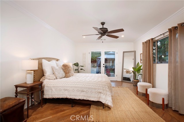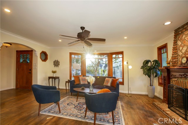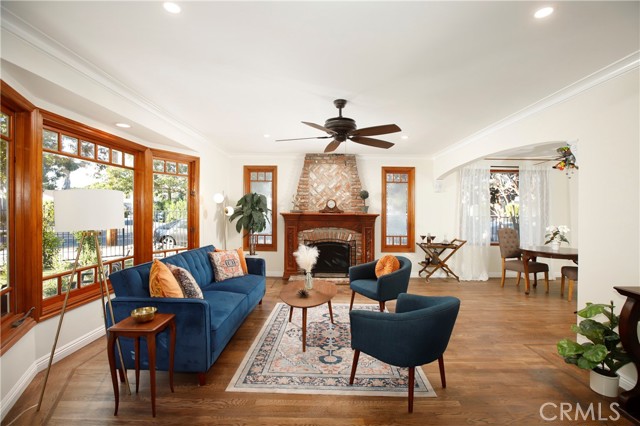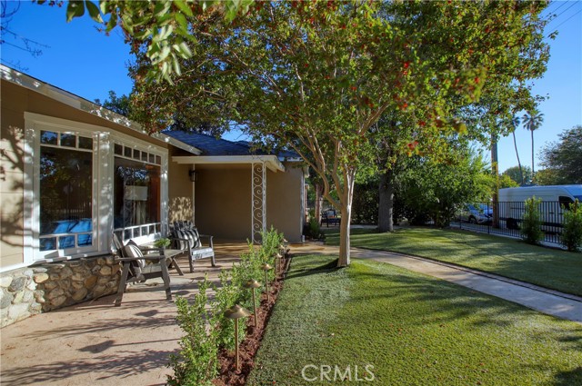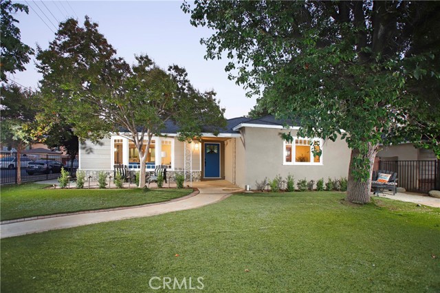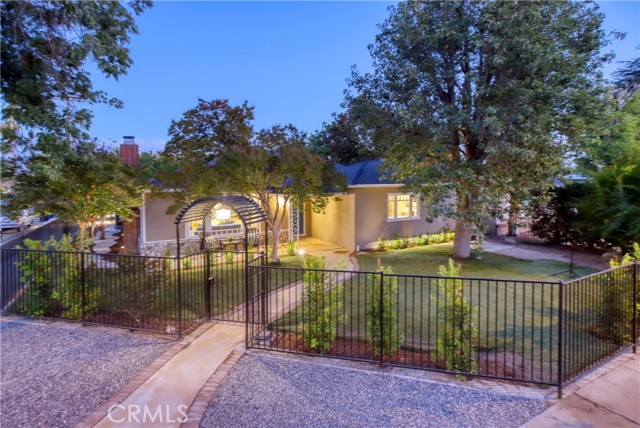 Classic California living in an enclave of well-established residences, this timeless home showcases the artistry, design, and craftsmanship of a bygone era. From the manicured landscaping to the panoramic picture window and color-saturated stained glass panels of the Arts & Crafts front door, every detail captivates. A formal entry welcomes you in and invites you to pause. Your eyes are drawn to the handcrafted herringbone brick fireplace framed by glass sidelights. You immediately experience the difference in the details — rich inlaid hardwood floors, architectural corbels, solid wood doors, classic moldings, and spectacular fireplaces reflect enduring quality. The expansive chef's kitchen blends modern luxury with vintage charm, appointed with custom-built sage soft-close cabinetry, gleaming carrera quartz countertops, beveled subway tile backsplash, new stainless dishwasher and French-door refrigerator, and an abundance of storage. The coveted butler's pantry — ideal for entertaining — includes a wine and champagne refrigerator, open wood shelving, prep sink, and designer fixtures make this space unforgettable. A sprawling floor plan flows to inviting rooms and gathering spaces, including a cozy den with built-in shelving and skylight — perfect for quiet moments, new memories, and relaxed living. Two generously sized bedroom suites provide flexibility for multi-generational living: one with a private balcony, the other with ensuite bath and French doors opening to a serene backyard retreat. Enjoy evenings under the covered cabana, with screens and curtains for comfort and privacy, surrounded by professional landscaping and warm lighting creating ambiance. A charming backyard gazebo is a sweet spot to use your imagination: Sunrise yoga stretches, an artist's atelier, a play space, poker, whiskey & cigars, afternoon tea, or a hammock, a good book and afternoon naps. Resting on an expansive 9,000+ sq ft corner lot, the home is framed by elegant wrought-iron fencing and an arched entry gate. The oversized garage includes a separate room — perfect as a home office or creative studio. A thoughtfully placed utility/mudroom with laundry hookups off of the kitchen enhances everyday convenience. A true character home in the heart of the Valley — blending craftsmanship, comfort, and classic California elegance. Convenient to Burbank Studios, Lake Balboa, the Arts District, NoHo haunts, and iconic dining at Norms Diner — "Where life happens." Welcome Home.