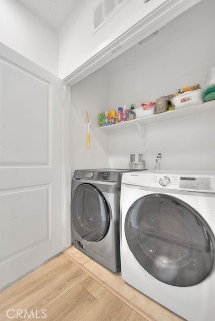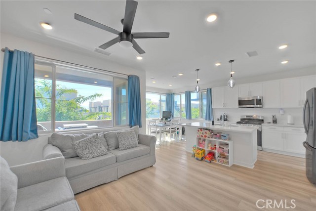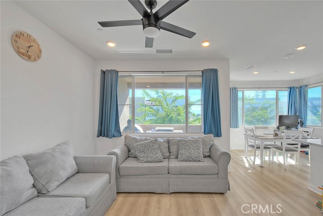 Modern floor-plan with modern design and lifestyle. This open concept 2 bedroom, 2 bathroom, Laundry Closet, 2-car garage Condo, was built in 2022 in the up and coming city of Ontario, and Ontario Ranch neighborhood. Wood laminate flooring, custom window coverings, stainless steel appliances, quartz countertops, washer & dryer included. Energy efficiency: leased solar panels and tankless water heater. Community features: pool, spa, clubhouse, playground and gated dog park. Close in proximity to new Ontario Dodger TowerBuzzer Stadium, Ontario Airport, 10, 15 & 60 freeways and more!