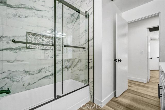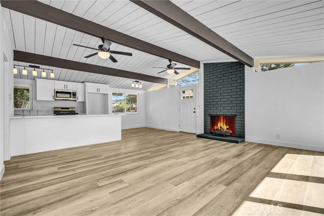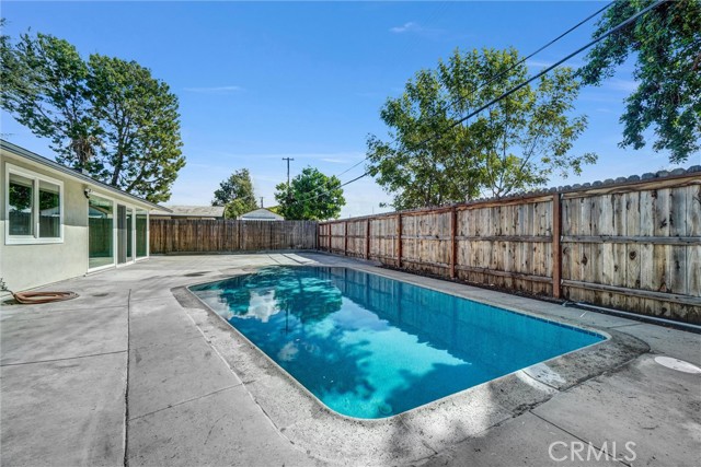 Beautifully Remodeled Mid-Century Modern Home in La Habra! This stunning 3-bedroom, 2-bath home has been completely remodeled inside and out. Enjoy a brand-new driveway with generous parking space for multiple vehicles, plus a spacious backyard with fresh concrete and a sparkling in-ground pool — a perfect setting for barbecues, celebrations, or quiet evenings by the pool. The pool was recently replastered with pebble finish and new filter, new pump, and new lights were installed. The bright, open kitchen features elegant quartz countertops, a new island overlooking the family room, all-new stainless steel appliances including gas stove, microwave, and dishwasher, plus a new sink and fixtures. Throughout the home, you'll find new flooring, fresh interior and exterior paint, recessed lighting, and double-pane windows for energy efficiency and comfort. Both bathrooms have been beautifully upgraded with new vanities, quartz countertops, new toilets, shower doors, mirrors, and modern lighting. The detached two-car garage includes a new motor and door. Potential RV parking at side of home. Located on a quiet street in the City of La Habra, close to restaurants, shopping, banks, and schools. This move-in-ready Mid-Century Modern home blends timeless style with today's upgrades — an ideal home for both relaxing and entertaining!