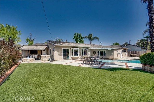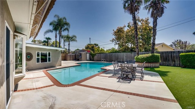 Welcome to 17922 Romelle Ave – A North Tustin Gem with Resort-Style Living! Step into this beautifully upgraded pool home nestled in one of the most desirable neighborhoods in North Tustin. Boasting 4 spacious bedrooms, 3 full bathrooms, an enclosed sunroom/office, and over 2,400 sq ft of thoughtfully designed living space, this home offers the perfect blend of elegance, comfort, and function. Set on a generous 11,600 sq ft lot, the home features fantastic curb appeal, a wide driveway, and lush landscaping — setting the tone for what awaits inside. The moment you enter, you're greeted by soaring vaulted ceilings, rich hardwood flooring, and a stunning marble fireplace in the expansive family room. A large skylight bathes the space in natural light, creating a warm, inviting ambiance. The chef's kitchen is a true showstopper — complete with custom cabinetry, travertine tile flooring, granite countertops & backsplash, and a massive kitchen island perfect for gathering. Top-of-the-line stainless steel appliances, including a double oven and oversized walk-in pantry, make this kitchen ideal for entertaining and everyday living. Enjoy picturesque views of the resort-style backyard from your kitchen window. The private primary suite is generously sized and features a large walk-in closet and easy access to the backyard oasis. A thoughtfully placed 4th bedroom and full bath on the opposite side of the home offers excellent privacy — perfect for guests, in-laws, or a home office. Additional interior highlights include: A bright, airy sunroom/office Long hallway with custom built-in shelving and skylight Indoor laundry room with sink Ceiling fans in every room Crown molding throughout Whole-house water softener system Step outside to your personal paradise: a sparkling pool, built-in BBQ island, low-maintenance artificial turf, and ample space for gatherings and celebrations. The backyard also includes a large storage shed, direct garage access, and an automatic pool filler for ease of maintenance. The finished garage features built-in cabinetry, providing extra storage and organization. Located close to top-rated Tustin schools, shopping, dining, and easy freeway access — this home truly has it all. ? No HOA ? No Mello-Roos ? Move-in ready & perfect for entertaining year-round Don't miss your chance to own this stunning North Tustin home — schedule your private showing today!