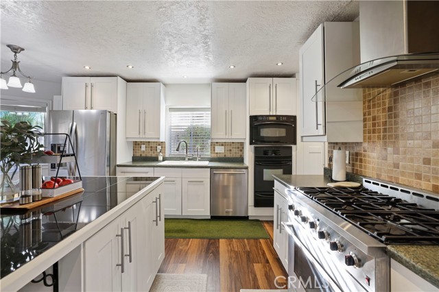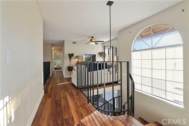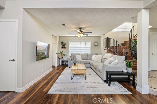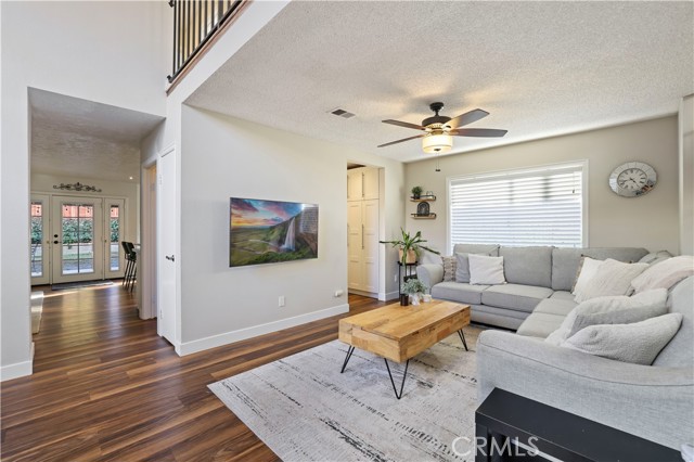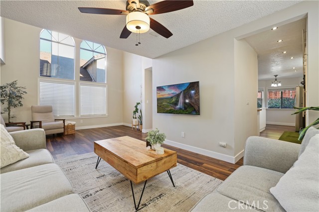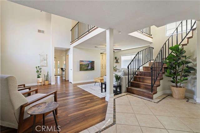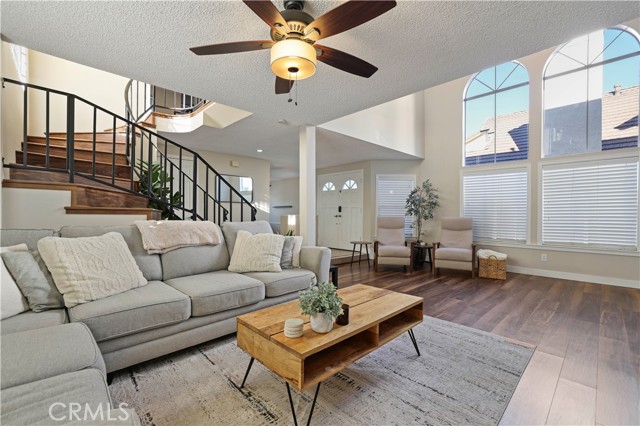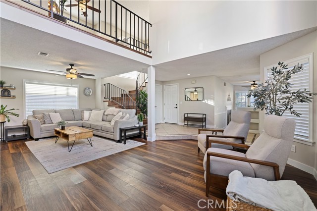 This is a rare find! One of the largest model homes in the highly sought after American Beauty Classics neighborhood - could be yours! Inside this fully modernized home is a neutral canvas ready for a new home owner's imagination. The moment you step through the front door you'll notice how the natural lighting comes with you through the 2 story window panes making the entire house warm and bright. There are many open and inviting areas in this 2,349 square foot home to turn into creative spaces such as an exercise room, art & hobby room, kids playroom, and family living room. The open concept kitchen and dining room is updated and spacious making it a breeze to host family gatherings. The fireplace adds warmth and ambiance to family meals. As you walk through the french doors to the private backyard you'll notice the brand new cedar fence beyond the large yard and patio. The backyard space is ready to be transformed into your own private oasis while the front yard is conveniently maintained by the HOA. Up the curved staircase you will find a loft area providing a cozy nook and gives the birds eye view from the top floor. To the left, the master suite has its own wing with a vaulted ceiling that gives off regal vibes. The master has a large lounge area that can also be turned into a library or powder room and an en-suite beautifully updated master bathroom with an adjoining walk-in closet. On the far side of the loft are the additional 3 spacious bedrooms and hall accessible full bathroom. There have been many updates and renovations including paid off Solar, brand new roof, new luxury vinyl flooring, new HVAC, new fans and fixtures, bathroom renovation, and reverse osmosis system. This home has no Mello Roos and very low HOA. You can't get more safe and family friendly than this neighborhood complete with 4 pools, sport courts, park, a tot lot, and 24hr security.
