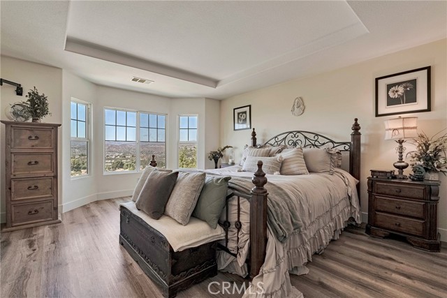 Welcome to 19639 Ellis Henry Court — a hillside masterpiece tucked inside the exclusive gated community of Canyon Gate in Newhall. This 4-bedroom, 3-bathroom Tuscan-inspired retreat spans approximately 2,476 sq. ft. of refined living space, blending timeless design with modern comfort. Step through the doors and instantly feel the warmth of this home's Mediterranean soul — vaulted ceilings, Venetian plaster walls, and luxury waterproof wood flooring set the stage for everyday elegance. The open-concept kitchen is both stylish and functional, featuring quartz countertops, an oversized island with sink, recessed lighting, and a cozy breakfast nook framed by breathtaking 180° panoramic views of the Santa Clarita Valley. The living room, anchored by a beautiful fireplace, invites effortless gatherings and quiet evenings alike. Upstairs, the primary suite is your sanctuary — wake up to endless views that stretch across the valley and soak in the serenity that only hillside living can provide. Outside, the backyard becomes your private oasis, perfectly designed for entertaining or simply taking in the sunset. A dedicated laundry room adds convenience, while community amenities like secured gated entry and a sparkling pool enhance the resort-style feel. Located minutes from Golden Valley Plaza, top-rated schools, dining, and freeway access, this home offers both luxury and lifestyle. If you've been searching for a turnkey home with character, comfort, and unmatched views — you've found it. Welcome home to Canyon Gate.