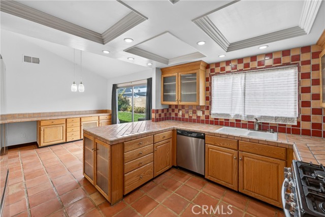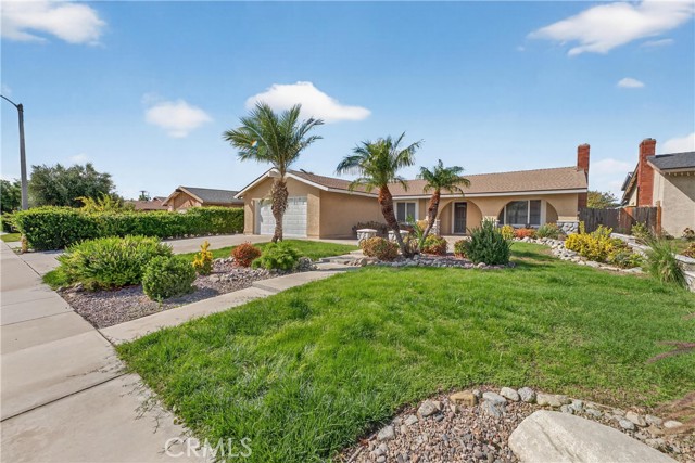 Single story home with great curb appeal, both the front yard and the back boast sod and landscape includes rock border detailing, new plants and brick patio, low maintenance & tastefully done. Living room which has a fireplace, high ceilings with track lighting, decorative niches & display shelves. Spacious kitchen and dining area features light wood toned cabinetry with an abundance of storage cabinetry, counter space to prepare and serve, decorative pendant lighting, decorative glass insets to multiple cabinet doors, recessed lighting, Ceramic tile, custom tile backsplash kitchen counter tops All 3 bedrooms have additional storage & shelving which adds storage. The master bedroom has a master suite. The driveway offers plenty of parking with additional area of concrete to provide extra space.