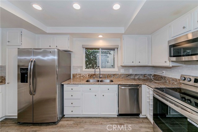 Experience resort-style living in this beautifully updated El Mirador end unit, offering one of the most breathtaking golf course and lake views in Laguna Woods Village. Perfectly situated along the par-3 course, this rare home features an expansive tiled balcony — an ideal spot to enjoy your morning coffee or unwind with evening wine while taking in the serene scenery. Inside, you'll find a bright and spacious 2-bedroom, 2-bath layout with a tastefully remodeled kitchen boasting granite countertops, an exotic backsplash, recessed lighting, and stainless steel appliances including a newer range/stove. Additional highlights include smooth ceilings with crown molding, a newer main entry door, upgraded closet doors, double-pane windows and sliders, vinyl plank flooring throughout, and two zoned heat pumps for comfort and efficiency. Enjoy all the exceptional amenities this renowned 55+ community has to offer — 7 clubhouses, 5 pools, 2 fitness centers, 2 golf courses, tennis courts, an equestrian center, garden centers, library, performing arts theater, and more than 200 clubs and activities. Conveniently located near Laguna Beach, shopping centers, and dining, this home blends tranquility, luxury, and convenience in one perfect package.