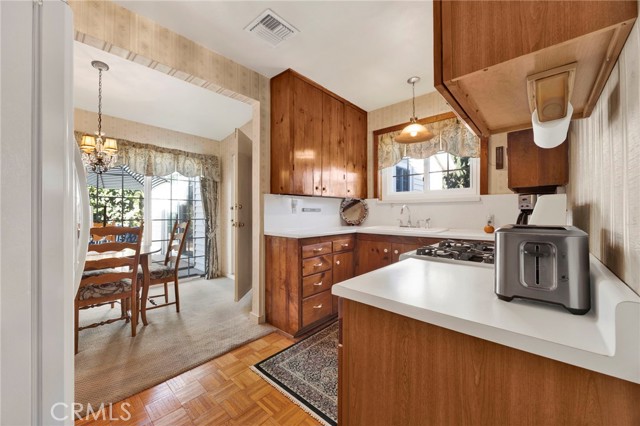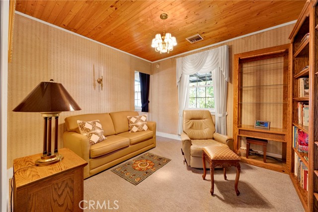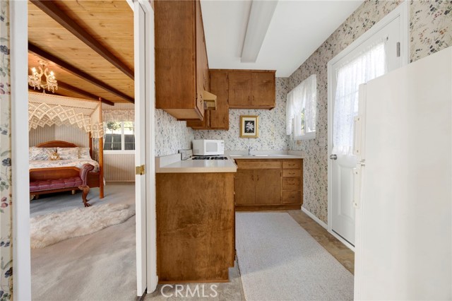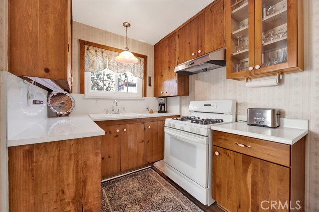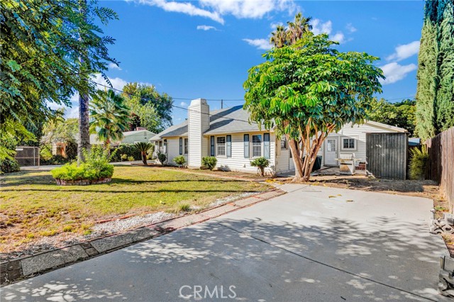 Welcome to this beautifully preserved RETRO-VINTAGE home that radiates charm, warmth, and pride of ownership in the heart of Van Nuys. Resting on a large fenced-in 8,300 sq ft lot, this one-of-a-kind property offers TWO DRIVEWAYS, RV ELECTIC AND GREYWATER HOOKUPS, and mature palm trees accented by blue decorative shutters that frame the windows beautifully, showcasing a perfect blend of timeless curb appeal and thoughtful modern updates. Step through the elegant DOUBLE DOORS with etched glass panels into an inviting foyer featuring a VAULTED wood-paneled ceiling, chandelier lighting, and tile flooring, all setting the stage for the home's classic retro character. The bright, spacious living room showcases large picture windows, newer DUAL-PANE WINDOWS, a cozy gas fireplace, and soft WOOL carpeting, creating a warm, light-filled gathering space that perfectly captures MID-CENTURY CHARM. The home features TWO KITCHENS, a dining area, and a versatile layout with two bedrooms plus a DEN that can easily be converted into a THIRD BEDROOM. The guest side of the home functions beautifully as a BUTLER'S AREA or private suite, ideal for extended family, guests, or creative workspace needs. Both bathrooms reflect the home's VINTAGE elegance — one featuring classic tile and a glass-enclosed tub, and the other accented with stylish wallpaper and decorative finishes. Recent updates include a NEWER ROOF, windows, tankless water heater, electrical panel, CENTRAL A/C, and gutters, ensuring comfort and efficiency while preserving the home's authentic retro integrity. Additional highlights include TWO GAS FIREPLACES (in the living room and primary suite), a functional laundry room with sink and shelving, and a PRIVATE SAUNA for ultimate relaxation. Outdoors, the spacious gated yard provides ample room for entertaining, gardening, or adding a future ADU. The detached garage, currently converted into storage and a SOUNDPROOF OFFICE with acoustic drywall, offers the perfect setup for remote work, a studio, or creative pursuits. Enjoy the peaceful outdoor setting surrounded by orange and lemon trees, completing this truly special property. Conveniently located just minutes from the 101 and 405 freeways, Van Nuys Airport, Balboa and Woodley Parks, golf courses, and Costco, offering easy access to top shopping, dining, and entertainment.