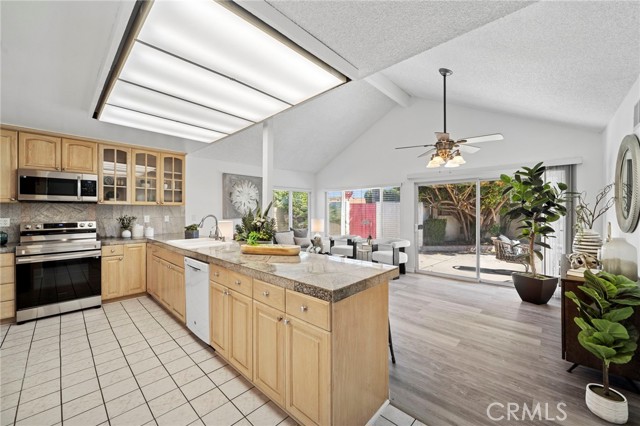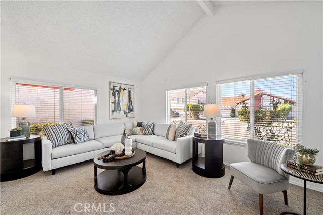 Highly desired Seville model single story home located in the sought-after Greenbrook community of Fountain Valley, just steps to the association clubhouse, pool with the "Gators" swim team, and park with BBQ and picnic area, plus it's within the top-ranked school zone and only 4 miles to the beach. This lovely residence offers an open, flowing, light-filled floorplan with cathedral ceilings, dual pane windows, and ceiling fans throughout. It showcases beautiful curb appeal with fresh exterior paint, manicured landscaping, and a private front courtyard leading to the entry. Inside, the tiled foyer opens to an extra-large formal living and dining room with soaring ceilings and a cozy fireplace. The kitchen has been upgraded with granite tile countertops and backsplash, natural wood cabinetry with glass display panels, and an oversized pantry, and it opens to a separate family room with cathedral ceiling and sliders to the backyard. Outdoor living includes a spacious concrete patio, wrap-around lawn, and stucco & blockwall privacy fencing. It features 3 bedrooms, 2 baths, and a spacious 1,539 square feet. The primary suite features mirrored closets, sliding doors to the backyard, and an ensuite bath with walk-in shower and clear glass enclosure, while the hall bath includes a tub/shower combo. Additional highlights include a direct-access 2-car garage with washer/dryer hookups and attic storage.
