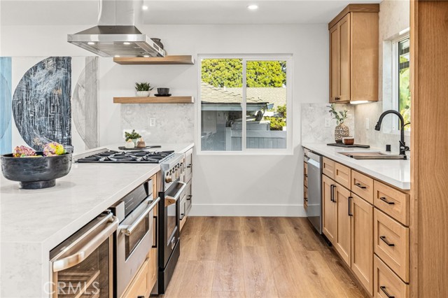 Would you like to live at the beach and walk to the sand? Don't miss this beautifully upgraded, completely remodeled single-level 2-bedroom, 2-bath 1,250 sq. ft. home that marries classic coastal charm with contemporary finishes and is just a short stroll to the shore. Charming cottage-style curb appeal leads to bright, open living spaces and an enclosed private patio — ideal for seaside living and entertaining. The remodeled kitchen is a chef's delight with a large peninsula featuring a quartz waterfall countertop and new high-end appliances: KUCHT Pro-Style gas range, FORNO drawer microwave, FRIGIDAIRE 45-bottle wine cooler and SAMSUNG dishwasher. The primary suite is a peaceful retreat with an acacia vanity topped in quartz and a luxurious walk-in shower. Additional upgrades include: new roof, new dual pane low-e windows, new PEX water lines, new electrical subpanel, ABS sewer lines with 2 way clean-out, new wide plank luxury vinyl flooring throughout, all new doors and more. Additional features include: a hall laundry closet with cabinets and a quartz folding shelf, a gas fireplace in the living room, and a detached one-car garage for extra storage. Nestled in the 55+ Bay Cliff Village community, this home offers endless opportunities for surf, jogging, strolls, sunsets and resort-style coastal living with downtown San Clemente, the historic pier and Dana Point Harbor just minutes away.