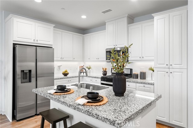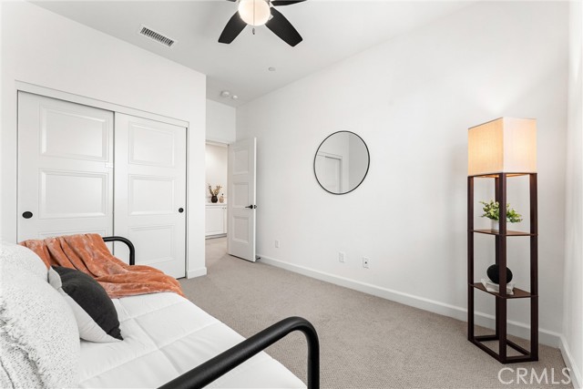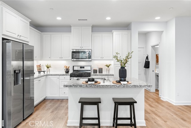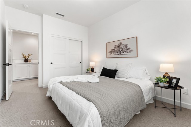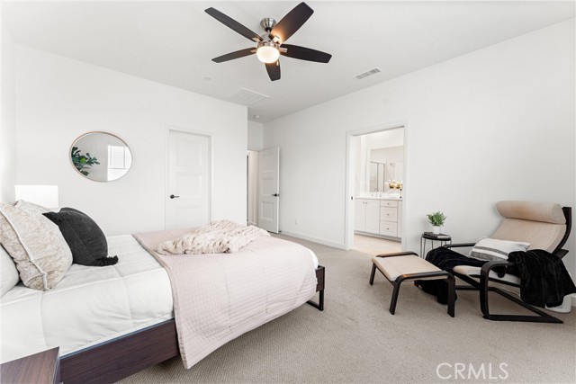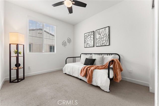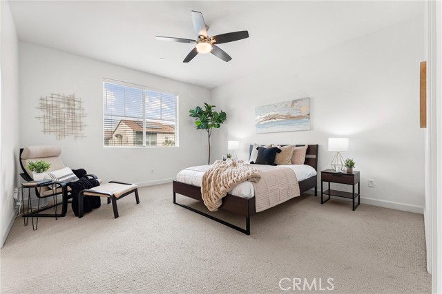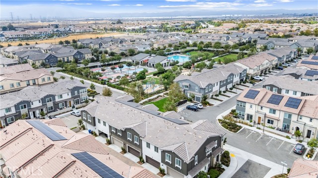 Step into this beautifully designed 3-bedroom, 2.5-bathroom home nestled in the highly sought-after New Haven Community of Ontario Ranch. Offering 1,396 sqft of thoughtfully laid out living space, this move-in-ready residence blends modern comfort, energy efficiency, and resort-style living. From the moment you arrive, the inviting front porch sets the tone — perfect for sipping your morning coffee, unwinding after a long day, or simply enjoying the calm, neighborly atmosphere. Inside, you'll find a bright, open layout featuring luxury vinyl plank flooring throughout the main level and plush carpeting upstairs. The heart of the home — your kitchen — features granite countertops, sleek cabinetry, and ample space for both cooking and entertaining. Upstairs, the spacious primary suite offers a peaceful retreat with a private ensuite bathroom and a generous walk-in closet. Two additional bedrooms and a full bath provide flexibility for family, guests, or a home office setup. Additional highlights include an attached two-car garage, solar panels, and a tankless water heater, offering both comfort and energy efficiency. This home has been thoughtfully maintained and is truly move-in ready. Living in New Haven means enjoying access to resort-style amenities including sparkling pools, a modern clubhouse, fitness area, BBQ and picnic areas, and cozy fire pits — perfect for entertaining or relaxing all year round. The location is unbeatable: close to top-rated schools, with easy access to the 15 Freeway, and just minutes from Ontario International Airport, Ontario Mills, and Victoria Gardens. Whether you're commuting, shopping, or dining, everything you need is just around the corner. Don't miss your chance to own a beautifully upgraded home in one of Southern California's most desirable master-planned communities. Come experience the lifestyle at 3629 E. Happy Paseo #153 — where comfort, convenience, and community come together.
