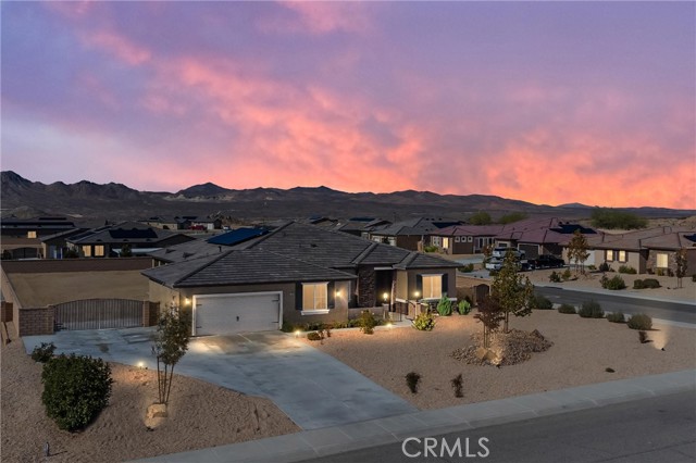Resort Living at its' finest! This stunning home is located in the popular Vista Del Sol Estates "gated" community. Close to shopping, restaurants, freeway access and entertainment. Welcome to your new High Desert Oasis, this light and bright open floor plan offers a grand living area with gourmet kitchen, four generous sized bedrooms, three baths and an office. Enjoy a spacious open indoor/outdoor space with French doors off the kitchen that open to a large patio accented with a breathtaking fireplace. Find yourself in an open setting to entertain family and friends while the fireplace blazes with warmth and the natural light floods in through the French doors. You'll stay extra cozy while sipping your favorite glass of wine while watching the sunset. Whether you're reading a book, enjoying a cup of coffee or watching a movie, you'll enjoy the expansive feel of the living room entertainment area. Built with sustainability in mind, it is re-imagined with design from high end finishes to elevated ceilings. Step away from reality and escape to your cozy master bedroom retreat. This separate wing offers privacy for the master bedroom and a sprawling bathroom that offers a soaking tub, walk-in shower, large master closet and has its own private entrance from the backyard patio. You will find two large bedrooms in a separate wing, both thoughtfully designed with lots of natural light. Designed with premium windows in each, wake up to the feeling of being nestled with views of distant mountains. The fourth bedroom is located off the kitchen wing and offers a walk-in closet. This majestic residence is located on a large corner lot. Plenty of room to create your own park-like setting, fully fenced to corral all the furry family members and kiddos who will enjoy hours of fun to run and play. RV parking and plenty of room to store your boat. Oversized garage to store all your toys. Separate laundry room and tankless water heater. You will experience peace and restoration throughout this thoughtfully designed and meticulously maintained home.