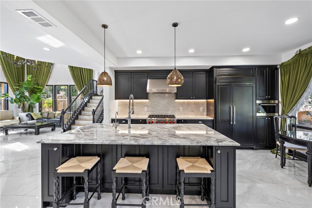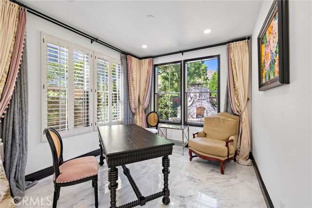 Welcome to this stunning, fully remodeled residence in the prestigious St. Michele gated community, perfectly situated at the end of a peaceful cul-de-sac. Every detail of this detached home has been thoughtfully upgraded, setting it apart from any other property in the neighborhood. The home features 3 spacious bedrooms, plus an open-concept office on the first floor that can easily be converted into a 4th bedroom, along with an additional loft upstairs offering flexible use as a family room, study, or play area. The redesigned kitchen has been opened up to create a seamless, modern flow, complete with granite countertops, stainless steel sink, Miele dishwasher, and gas cooktop — ideal for the home chef. The two-story vaulted living room is enhanced by custom imported draperies and motorized shades, filling the home with natural light and warmth. Throughout the main level, you'll find brand-new luxury vinyl plank flooring, while upstairs is adorned with plush new carpet. Designer upgrades include plantation shutters, custom closets, wainscoting, Nest thermostat, 5-inch baseboards, and a garage with epoxy flooring and overhead storage. The primary suite serves as a peaceful retreat, featuring a tray ceiling, double-door entry, in-wall TV wiring, and a spa-like ensuite bathroom with soaking tub, dual vanities, and a walk-in closet with built-ins. Step outside to a rare oversized backyard — one of the largest in the community — with lush landscaping and a built-in BBQ island, perfect for entertaining family and friends. The deep front yard and wide driveway at the cul-de-sac offer additional privacy and curb appeal. Located just minutes from Orange County's top private schools — Sage Hill, Harbor Day, and TVT, and within easy reach of UCI, this home offers access to some of the area's most highly rated public and private schools. Residents enjoy exclusive access to the community pool and spa, nearby parks, sports fields, hiking trails, and shopping centers. Experience the perfect blend of luxury, comfort, and convenience — a home not just to live in, but to truly thrive.
