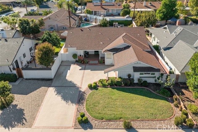 Welcome to 9309 Swinton Avenue, a beautiful single-story home in the heart of North Hills West that perfectly blends mid-century charm with thoughtful modern updates. The expansive front yard, ample driveway, and charming front porch set the stage for curb appeal and effortless everyday living. This spacious 4-bedroom, 2-bath residence spans nearly 1,900 square feet on a generous 7,500-square-foot lot, offering warmth, comfort, and functionality throughout. The inviting living room features gleaming hardwood floors and abundant natural light, seamlessly connecting to the formal dining area. The upgraded kitchen is a cook's delight with quartz countertops, a gas range, custom cabinetry, and a cozy breakfast nook. A step-down family room provides the ideal gathering space with a sliding door leading to the private backyard. The primary suite includes a charming window seat, ample closet space, and a beautifully tiled ensuite bathroom, while the additional bedrooms offer hardwood floors, generous closets, and versatility for guests or office use. A full hall bathroom features dual sinks and a shower-tub combination. Additional highlights include copper plumbing, double-pane windows, central HVAC, retrofitted foundation and a composition roof for peace of mind. The attached two-car garage provides extra storage and convenience, while the fully fenced generously-sized backyard is perfect for entertaining with a covered patio and room for gardening or play. Situated on a quiet residential street near shopping, schools including Heritage High School, a 9-hole golf course, and easy freeway access, offers the perfect balance of classic style, modern comfort, and a prime San Fernando Valley location.