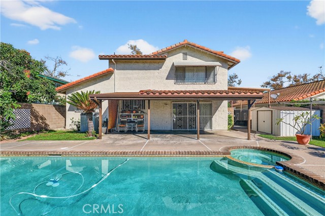 Welcome to 11702 Christy St. S & S Home. Home features. Four bedrooms. One bedroom and one bathroom downstairs. Family room with fireplace, wet bar and sliding door leading to patio and pool. Formal dining area, plantation shutters. Living room with cathedral ceiling. Master bedroom with two closets (one with walk-in closet) plantation shutters and private bathroom. Swimming pool and SPA. Covered patio. Tile roof. New water heater. Direct garage access. Covered RV access/parking. (buyer to verify) Copper piping. Sprinkler system. Avocado tree. Close to ABC schools, Cerritos mall, parks, restaurants, Cerritos auto square and convenient access to freeways.