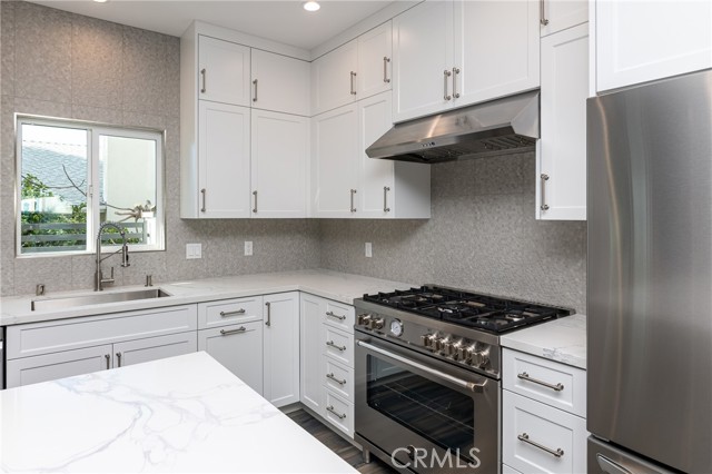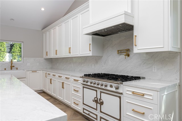 Nestled in the Foothills of La Crescenta, this newly completed French Modern estate offers refined elegance, privacy, and luxury living at its finest. Behind a private gate, you'll discover serene grounds surrounded by mature fruit trees and tranquil landscaping. The main residence spans approximately 5,000 square feet with an open floor plan designed for both comfort and sophistication. Inside, Italian flooring flows throughout, leading you into a stunning chef's kitchen featuring a La Cornue built-in range, quartz countertops, and an expansive kitchen island perfect for entertaining. With 6 bedrooms and 5 bathrooms, every detail has been thoughtfully crafted, from the custom finishes to the seamless indoor-outdoor living experience. Completed in 2023, this home exemplifies quality craftsmanship and modern elegance — every inch, from the interior design to the professionally landscaped grounds, reflects meticulous attention to detail. Adding to the appeal is a detached guest house offering 1,220 square feet of stylish living space, complete with 2 bedrooms and 2 bathrooms, its own address, and separate utilities — ideal for extended family, guests, or rental opportunities. Located within the award-winning La Crescenta Blue Ribbon school district, this exceptional property blends timeless European charm with modern California living.