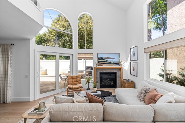 Tucked behind the gates of a Costa Mesa exclusive and rarely available community, 1947 Sundance Lane is more than a home, it's a feeling. Thoughtfully transformed with a full-scale designer renovation, this residence blends refined California living with the soul of the Italian countryside. A private, olive tree – lined courtyard welcomes you inside, where a limestone fountain and curated landscaping create a serene first impression reminiscent of summer evenings in Tuscany. Step through the front door and experience soaring double-height ceilings drenched in natural light, setting a dramatic yet inviting tone throughout the living space. The heart of the home is a bespoke chef's kitchen worthy of a magazine feature, complete with custom cabinetry, Taj Mahal quartzite countertops, integrated open shelving, and a professional-grade range. Every finish was hand-selected for both beauty and function, from the brass hardware to the statement fixtures and warmly layered textures. The flowing open layout transitions seamlessly to the fully remodeled outdoor patio, an entertainer's haven designed for al fresco dining and intimate gatherings. Backing directly to scenic Canyon Park, you'll enjoy unmatched privacy, peaceful tree-lined views, and no neighbors behind you. Upstairs are three beautifully designed bedrooms and two of three bathrooms, each offering organic materials, artisan tile work, and a spa-like aesthetic that feels both modern and timeless. The primary suite features a calming retreat atmosphere with curated lighting, warm oak tones, a designer bathroom boasting marble surfaces and matte black fixtures, and its very own outdoor balcony. Located in a quiet, gated enclave, this hidden gem is just minutes from world-class dining, shopping, Newport Back Bay trails, and Southern California's best beaches. The community also offers resident only access to a resort-style pool and spa. A rare opportunity to own a thoughtfully designed home where every day feels like a Mediterranean escape. Welcome to Sundance Lane.