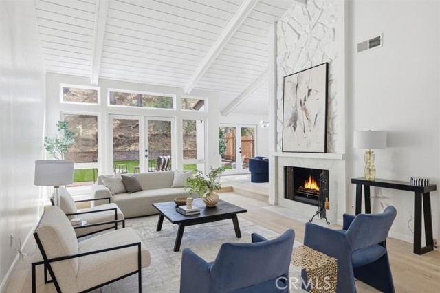 When you arrive at this Pacific Palisades residence, you are welcomed by timeless California architecture, tranquil hillside views, and a family friendly neighborhood. This single-story home blends relaxed coastal living with elegant design, offering three bedrooms and two bathrooms across approximately 2,200 square feet of thoughtfully curated space. Inside, natural light floods the open layout through expansive windows, creating a warm and inviting atmosphere. The main living area centers around a statement fireplace and vaulted ceilings, giving the space a sense of openness and charm. The adjoining dining area flows seamlessly into a spacious kitchen that offers generous cabinetry, ample prep space, and the perfect foundation for a modern culinary upgrade. Whether entertaining guests or enjoying quiet evenings at home, every corner of this residence is designed for comfort and effortless living. Sliding glass doors open to a private backyard sanctuary surrounded by lush landscaping. The outdoor space offers a tranquil setting for entertaining, relaxing, or enjoying the California sunshine. With approximately 6,600 square feet of land, there is room to expand, add a pool, or create an outdoor kitchen and lounge for year-round enjoyment. The primary suite is a serene retreat with direct access to the yard, a spacious walk-in closet, and an ensuite bath ready for a luxurious reimagination. Two additional bedrooms provide versatility for guests, family, or a home office, each designed with ease and functionality in mind. Located just moments from Palisades Village, the beach, hiking trails, and top-rated schools, this home captures the very best of the Pacific Palisades lifestyle. 17207 Avenida De La Herradura is more than a home; it is an opportunity to experience everyday life surrounded by beauty, peace, and possibility. Whether you choose to move in and enjoy its existing charm or transform it into your own coastal masterpiece, this property invites you to live with sophistication and serenity in one of the most coveted communities on the Westside.
