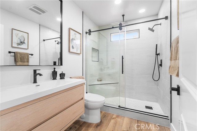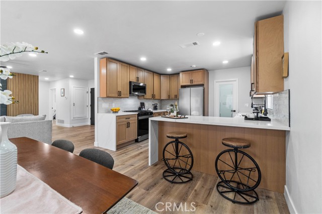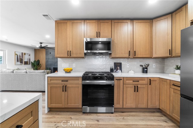 Welcome to this beautifully renovated 3-bedroom, 2.5-bathroom home, nestled in a private cul-de-sac in the heart of Downey. Thoughtfully upgraded throughout, this modern residence seamlessly blends quality craftsmanship with contemporary comfort and design. Step inside to a bright, open-concept living space featuring new flooring, recessed lighting, dual-pane windows, and updated interior and exterior doors. At the heart of the home is the gourmet kitchen with a walk-in pantry — designed for both functionality and style — featuring an island peninsula with bar seating, wood shaker cabinets, quartz countertops, and includes Samsung stainless steel appliances, including a 5-burner gas range, fridge, microwave, and dishwasher. The spacious primary suite is a private retreat, complete with backyard access, a walk-in closet, and a luxurious ensuite bathroom featuring a walk-in shower with a rain shower head. Additional highlights include: * Detached two-car garage with epoxy flooring and a new motorized opener * Versatile attached bonus room — ideal as a home office, gym, or creative space * Stackable In Home laundry room with washer/dryer hookups * New central A/C system with updated ductwork, plumbing, and electrical * Fresh exterior paint, new concrete hardscape, automated sprinkler system, and lush landscaping — perfect for entertaining or relaxing outdoors Move-in ready and located in one of Downey's hidden gem neighborhoods, this home offers the perfect blend of style, functionality, and location — just minutes from top-rated schools, shopping, dining, and major freeways.