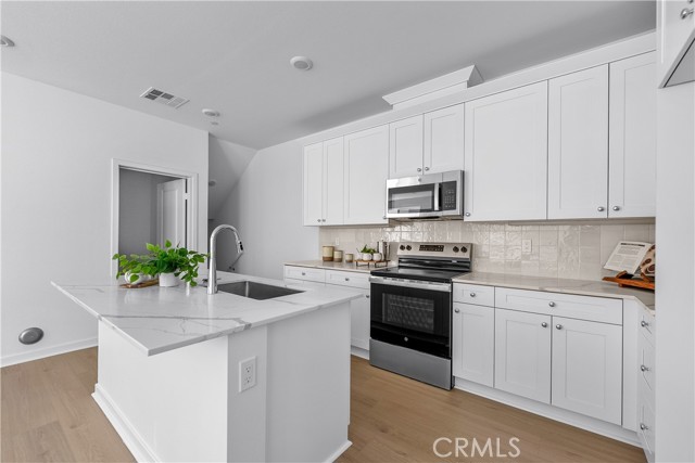 Welcome to Valley Villas, a private, gated community offering 58 all-electric, tri-level townhomes designed for modern urban living. Conveniently located just minutes from the 405 freeway, this home provides quick access to everything you need, whether for work or play. This thoughtfully designed townhome features a 2-car garage and a welcoming foyer on the ground level. The second floor is all about open, modern living with 9-foot ceilings, a bright dining room, and sliding doors that lead to a balcony, perfect for enjoying fresh air and natural light. The kitchen is centrally located, making it ideal for both relaxing and entertaining. A powder room on this level adds extra convenience for guests. On the top floor, you'll find the primary bedroom suite, complete with a walk-in closet. The secondary bedroom also includes en-suite bathroom, offering privacy and comfort. The laundry area is conveniently located on this floor as well, making daily tasks a breeze. Savor the Savings with our Fall Blue Tag event! For a limited time, take advantage of rates as low as 4.8% with our preferred lender Great Western Home Loans. Save hundreds on your monthly payment on move-in ready homes.