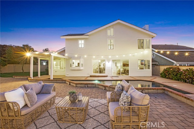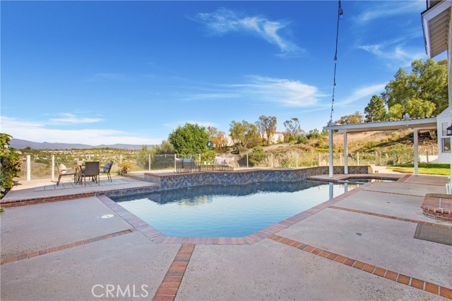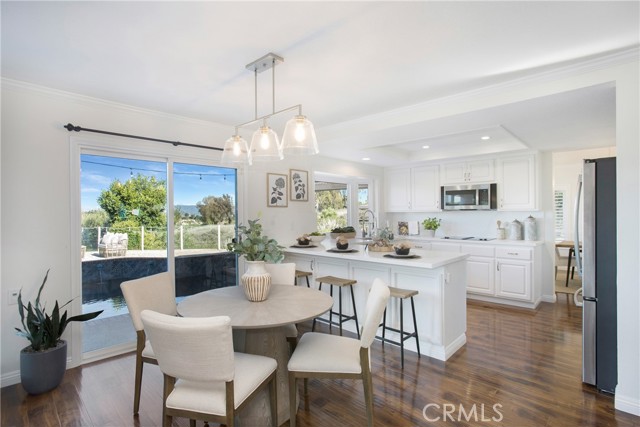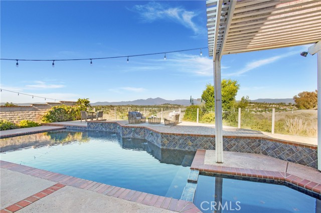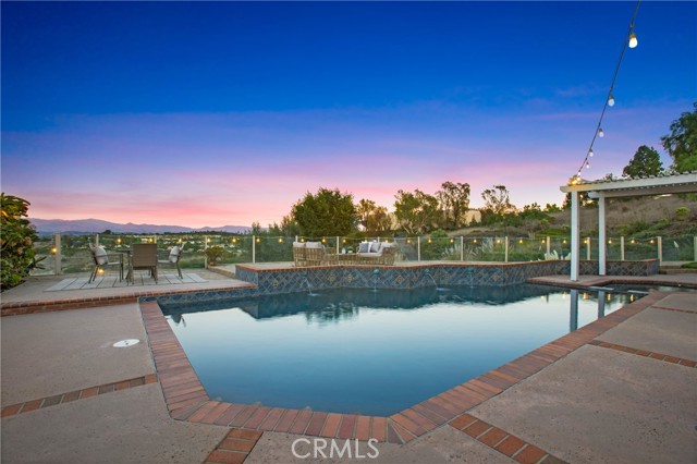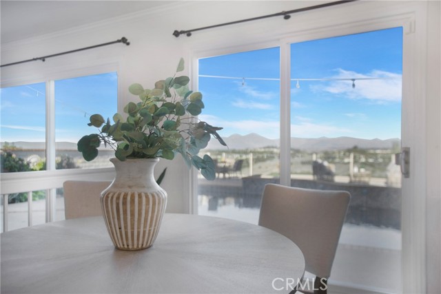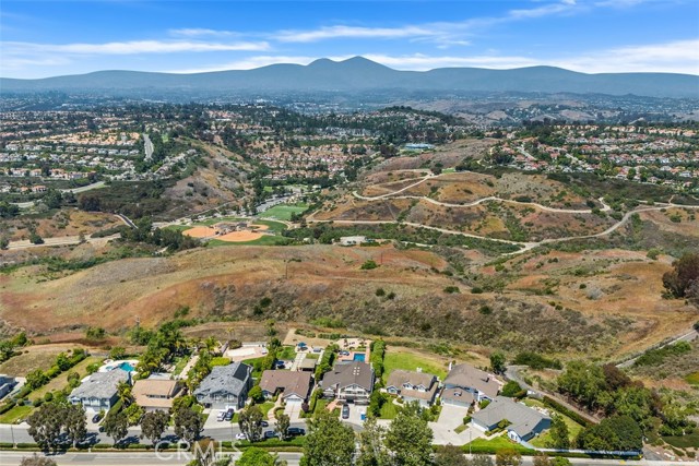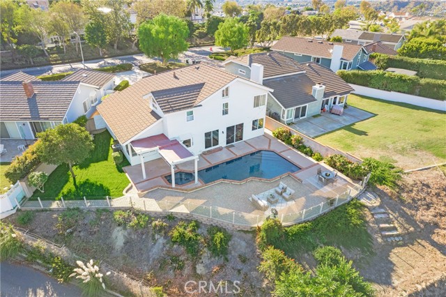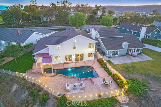 PANORAMIC SADDLEBACK MOUNTAIN VIEWS YEAR ROUND & snow-capped mountain views this gorgeous, just remodeled, picturesque property! This beautifully maintained home on a single loaded street offers 4 bedrooms and 3 bathrooms, including a desirable main floor bedroom, and is situated on an expansive 14,000 sq ft lot that extends onto the serene slope behind providing both space and privacy. The private backyard features a pool with premium Hydrazzo plaster and updated tile, glass fencing along the perimeter to showcase the views, and lush landscaping, a mature lemon tree, and with brand new grass in both the front and back yards.The upgraded interior includes three new chandeliers in the dining room, kitchen nook and entry way, brand new quartz counter tops and backsplash in the kitchen, rich laminate flooring downstairs, new bathroom vanity with quartz countertop with dual sinks in the primary bathroom with new mirrors and recessed lighting, and a brand new bathroom in the jack and jill bathroom upstairs which includes new flooring, a new dual sink vanity with quartz countertops, a new Pottery Barn light fixture, a new window in the shower and a new glass enclosure all with gold accents. The home is equipped with Milgard dual-pane windows throughout, Ecobee smart thermostat, Genie Wi-Fi smart garage door opener, smart front door lock, & Ring doorbell/outside cameras/alarm system and a freshly painted white interior (June 2025) and exterior (September 2023). Additional upgrades include a 240V charger for Tesla and other EVs, large driveway leads to a three-bay garage with loft storage with pull down stairs and a durable new steel roof. Located in the sought-after Beacon Hill community with access to 3 pools/spas and 6 lighted tennis courts, this home offers the perfect blend of luxury, privacy, and lifestyle.