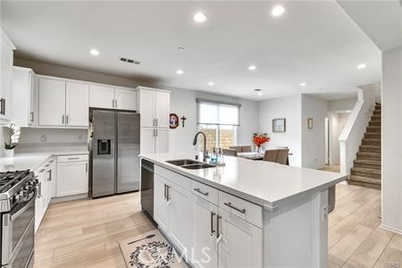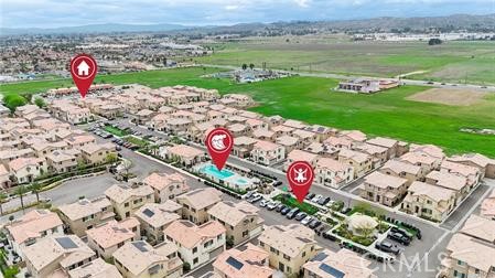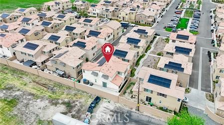 HUGE PRICE REDUCTION!! Welcome to this beautiful and spacious 5 bedrooms, 3 full bath home located in the thriving city of Perris, CA. Built less than 3 years ago! It offers 1 bedroom and 1 full bathroom downstairs. In a gated community, it includes PAID OFF SOLAR PANELS. Modern kitchen with a large island, laminate flooring, quartz countertop with clean modern backsplash, led recessed lighting with dimmer switches, upgraded stainless steel appliances which includes a double oven, upgraded window coverings throughout the home, and more. Upstairs you have 4 bedrooms and 2 baths plus a LOFT area; in the primary bedroom you have a spacious walk-in closet with upgraded closet shelving and in the garage the owner installed 2 storage racks 4 x 8 that will provide additional storage plus epoxy flooring. Owners recently cemented the backyard! Perfect for those summer nights to grill outside and enjoy the sunny days! Home is TURNKEY!!! Community offers a pool, dog parks, and BBQ area. Don't miss out on this great opportunity! Information is deemed reliable but not guaranteed. Buyer required to verify any and all information, including bedroom count, building SQFT, lot SQFT, etc.