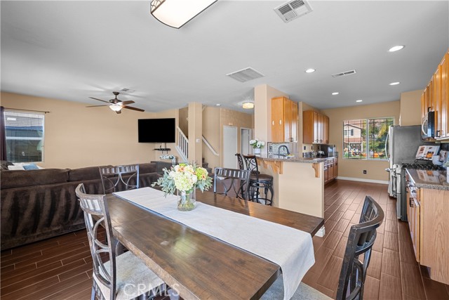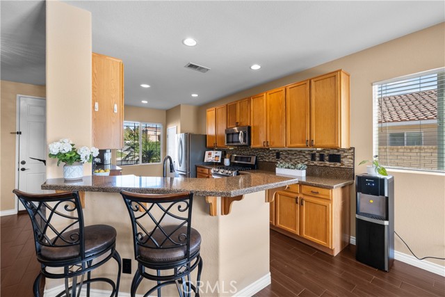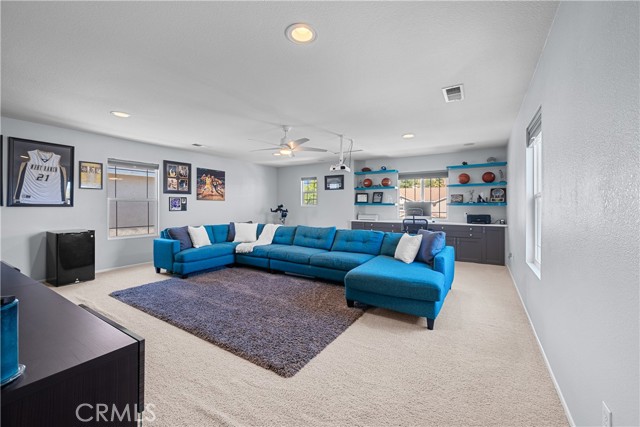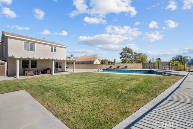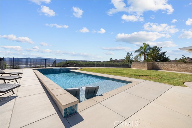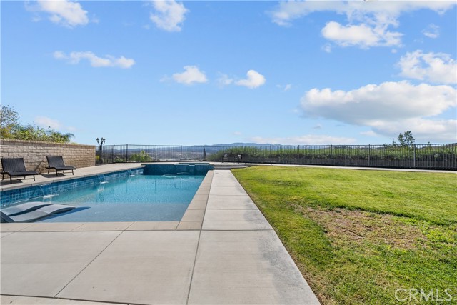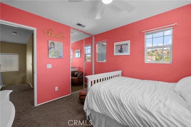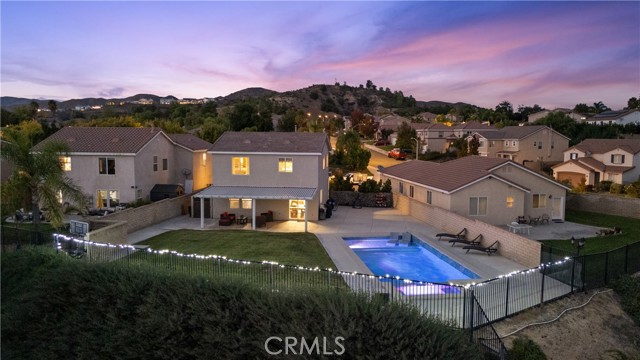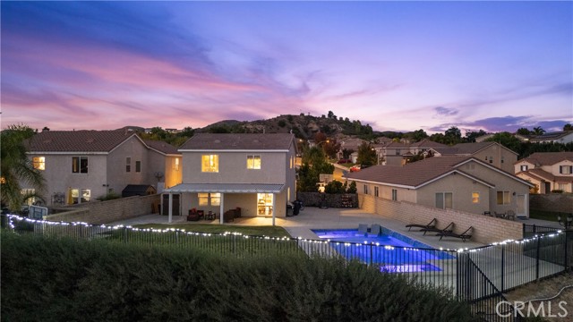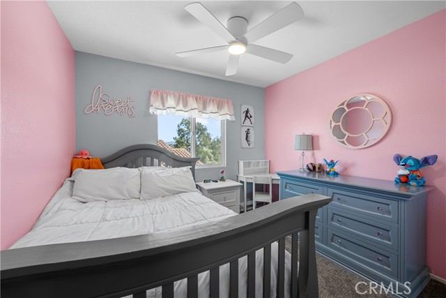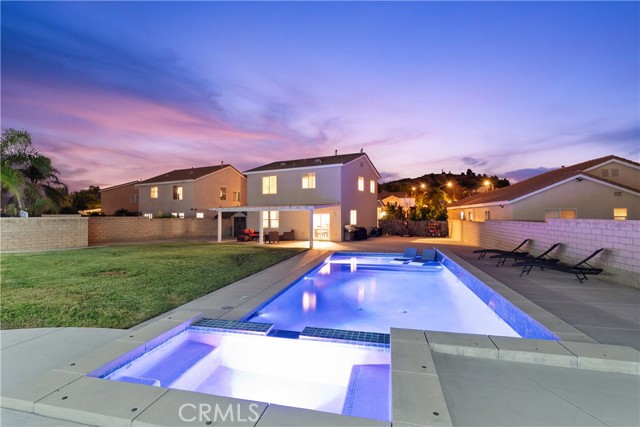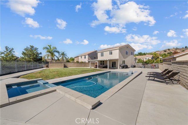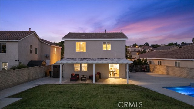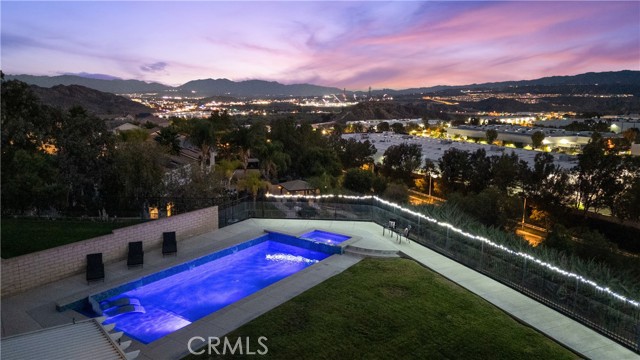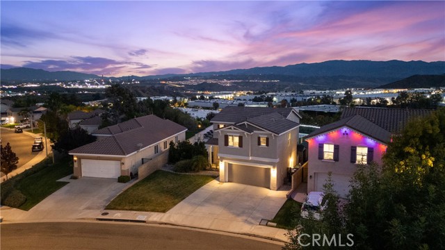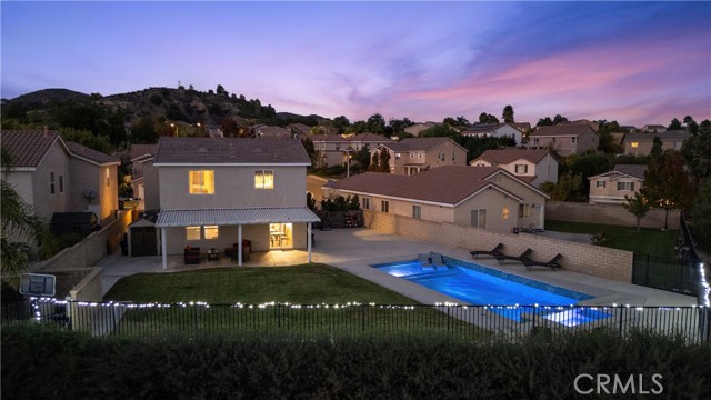 Welcome to your dream home in the desirable Hasley Hills community! This warm 2,247-square-foot residence on a 9,321-square-foot lot located in a cul-de-sac beautifully blends comfort and style. With 4 bedrooms and 2.5 bathrooms, the open-concept layout is perfect for gatherings and everyday living. A large front yard and covered porch create inviting curb appeal. The updated kitchen features granite countertops, a stylish backsplash, stainless steel appliances, and a breakfast bar ideal for morning coffee or casual chats. Tile floors extend through the kitchen and dining room, while plush carpeting in the family room adds warmth, flowing into a cozy family room filled with natural light. Downstairs, a freshly painted powder room adds charm. The separate laundry room includes updated cabinetry, a backsplash, added shelving, and extra counter space for convenience. Upstairs, the primary suite offers an ensuite bath with dual sinks and an updated walk-in closet. Two additional spacious bedrooms feature ceiling fans and mirrored closets, and a versatile fourth bedroom, currently utilized as a home office and theater room, includes a built-in desk, cabinets, shelving, and ample storage. Ceiling fans in all bedrooms and a full bathroom ensure comfort throughout. The backyard is a true showstopper! The expansive lot boasts a stunning pool with a Baja shelf and spa, creating a resort-like oasis perfect for relaxing or entertaining. A covered patio provides the ideal spot to unwind while enjoying breathtaking valley views. The generous grass area invites play and recreation, while large concrete sections offer space for sports or outdoor gatherings, making this backyard an unforgettable retreat. Modern upgrades, including a new AC unit, whole-house water filtration system, and updated water heater, ensure efficiency. The two-car garage offers ample storage. Located in Hasley Hills with no Mello-Roos and low HOA fees, this home is just minutes from the 5 and 126 freeways, Castaic Lake, and Six Flags Magic Mountain. Nearby grocery stores, restaurants, and parks add convenience. This is the perfect place to create lasting memories. Schedule your private tour today!