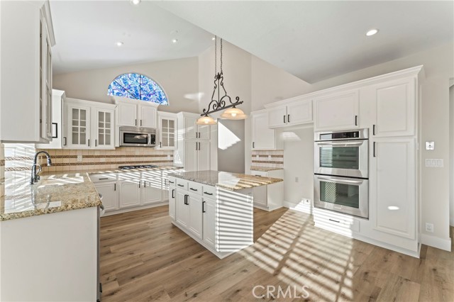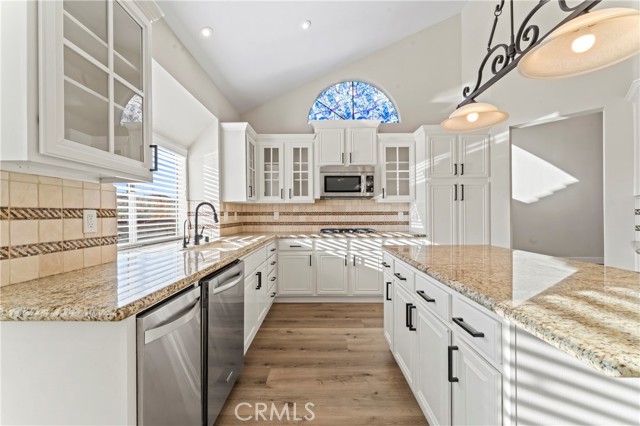 Incredible Mountain View upgraded pool and view home. No HOA, No Mello Roos. The updated kitchen features granite counter tops, granite center island/breakfast bar, stainless steel appliances, double oven, trash compactor, tile backsplash, plenty of cabinets and a breakfast nook and is adjacent to the family room with its built-in cabinets and fireplace. Downstairs bedroom with bathroom and shower. Living room and dining area with high ceilings, recessed lights and plantation shutters. Grand primary suite with views, walk in closet, plantation shutters with a fantastic updated primary bathroom. Step into the fantastic backyard with a pool, spa, covered patio and views. Great for entertaining and relaxing. Recessed lights, ceiling fans, ring doorbell, security cameras, large baseboards and more.