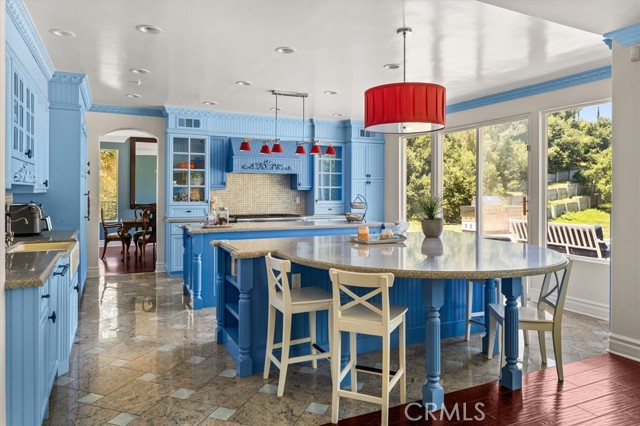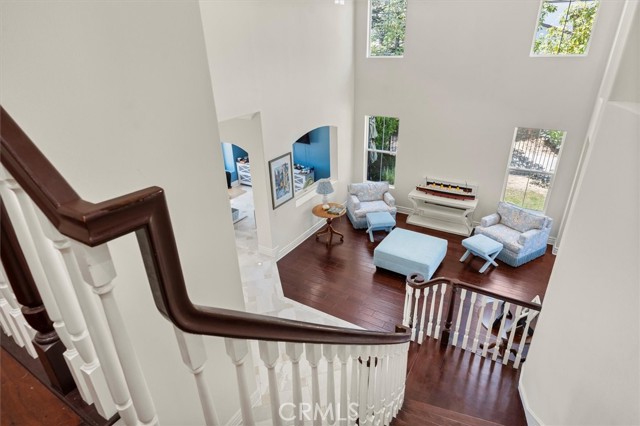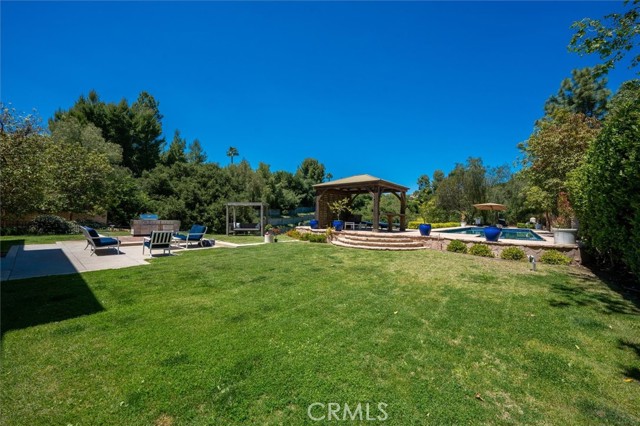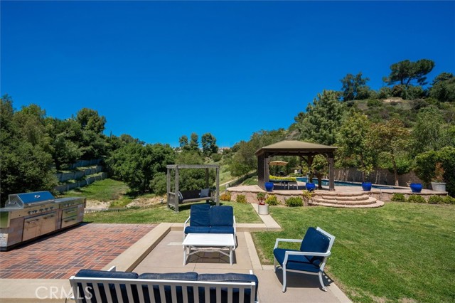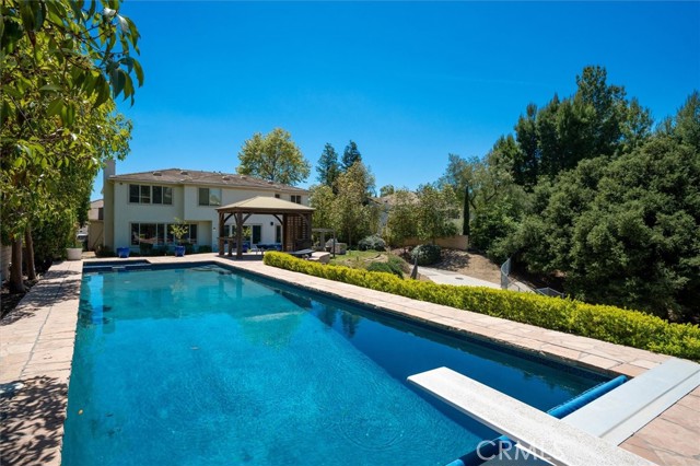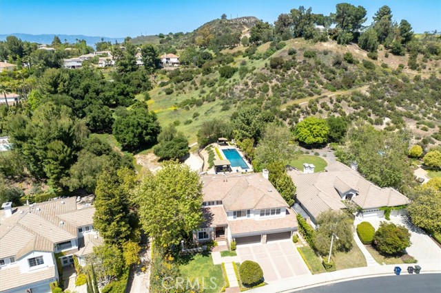 INCREDIBLE VALUE! Tucked away within the prestigious guard-gated enclave of Summit Point Estates, this exquisite five-bedroom, four-and-a-half-bath residence offers the perfect blend of timeless elegance and modern luxury. Situated at the end of a peaceful cul-de-sac, the home welcomes you with a stately double-door entrance that opens to soaring 30-foot ceilings and a bright, thoughtfully designed floor plan ideal for both refined entertaining and everyday living. The grand formal living and dining rooms exude sophistication, seamlessly flowing into a chef's dream kitchen — beautifully appointed with dual center islands, top-of-the-line Thermador appliances, and an abundance of custom French country cabinetry. The adjacent family room, anchored by a cozy gas fireplace, offers a warm and inviting ambiance, while the charming breakfast island provides the perfect spot for casual dining. A well-appointed guest suite with a private bath completes the main level, ideal for visiting family or friends. Upstairs, the expansive primary retreat features a serene sitting area, dual walk-in closets, and a luxurious en-suite bath with double vanities, soaking tub, and separate shower. Three additional bedrooms — two sharing a Jack-and-Jill bath and one with a private en-suite — provide ample space for family or guests. Walls of glass open to the resort-inspired backyard, where lush landscaping surrounds a sparkling pool and spa, expansive lawn, and covered patio — offering an idyllic setting for entertaining or tranquil relaxation. A finished four-car garage, complete with a 220-volt EV charger, adds to the home's exceptional amenities. Located in the scenic Santa Monica Mountains, just minutes from hiking trails, premier shopping and dining at The Village, and the iconic beaches of Malibu — this is California living at its finest.