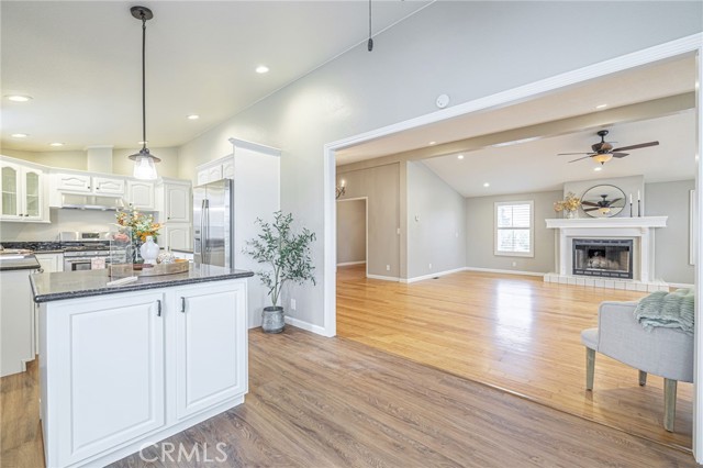 Welcome to this beautifully refreshed home in the heart of Downtown Acton! Just a short walk to local dining, grocery stores, the post office, and the community park, this property offers unbeatable convenience while maintaining the charm of small-town living. Inside, the bright and open living room showcases vaulted ceilings, plantation shutters, and a cozy fireplace — creating a warm and inviting atmosphere for both relaxing and entertaining. The kitchen features newly installed vinyl flooring, complemented by sleek bamboo flooring throughout the rest of the home. The primary suite offers a spacious bathroom with a separate shower and a tranquil soaking tub. The third bedroom/den provides an ideal space for a home office or flex room to suit your needs. Outside, enjoy the welcoming front entry with a pergola-covered patio — perfect for outdoor seating or morning coffee. Additional features include city water, natural gas, and a paved road for easy year-round access. A perfect blend of comfort, style, and prime location — don't miss your chance to make this lovely home yours!