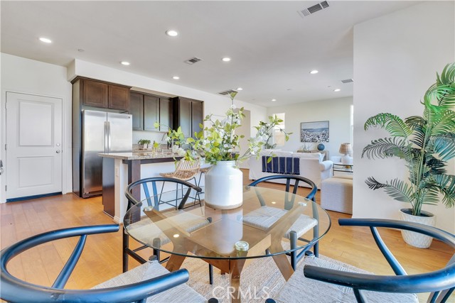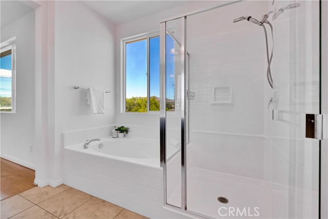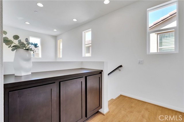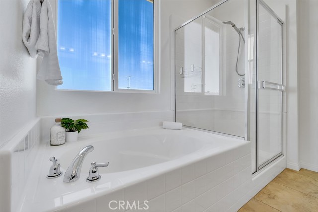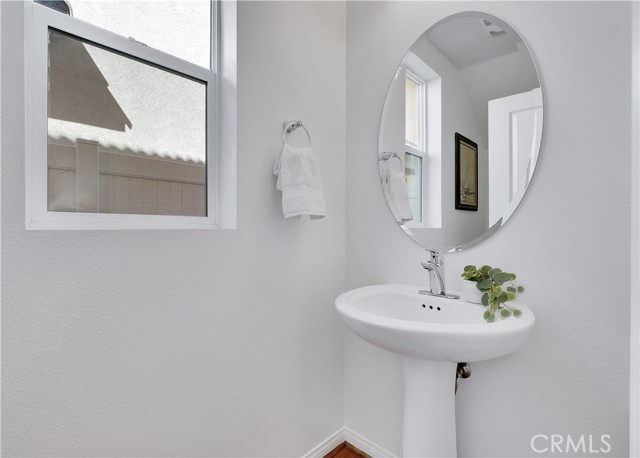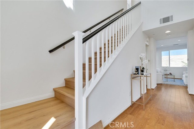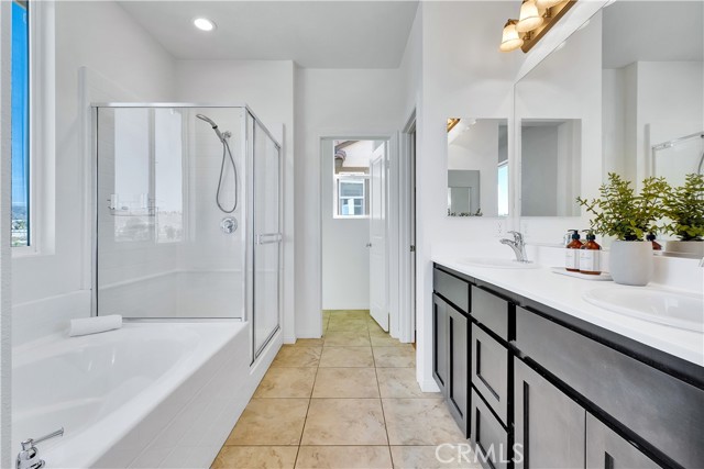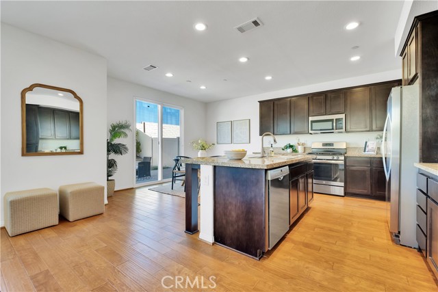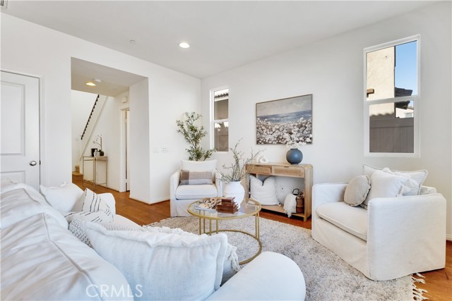 Built just 8 years ago, this beautifully maintained home offers durable hard flooring throughout, including stairs and all three upstairs bedrooms. Primary suite has a soaking tub and separate shower, double sinks, and a huge walk-in closet. The bright, open-concept main level seamlessly connects the spacious living room, dining area, and a well-equipped kitchen with abundant cabinetry and counter space. Enjoy a roomy two-car garage with built-in shelving, plus convenient guest parking nearby. Step outside to a generous, private backyard with native, drought-tolerant landscaping and a large stone patio — perfect for entertaining or relaxing. All nestled in the highly desirable Trestles community, featuring a gated entrance, pool, playground, and scenic walking paths — with low HOA dues and no Mello Roos. Easy access to shopping, dining, and the 14 freeway makes this the perfect place to call home.