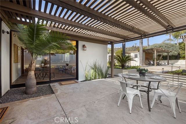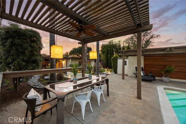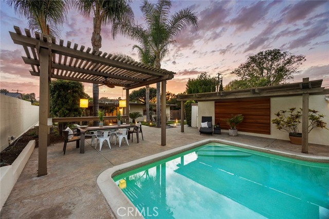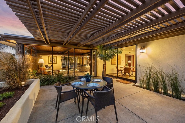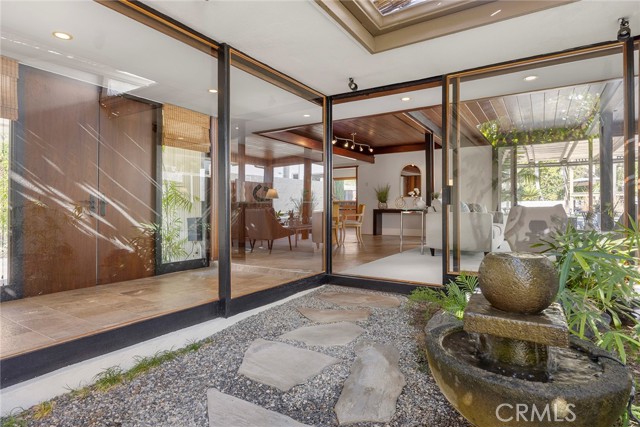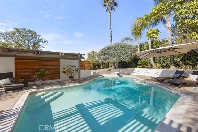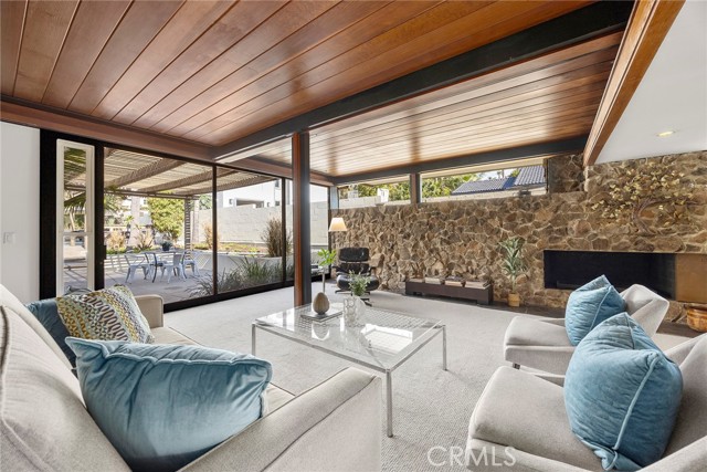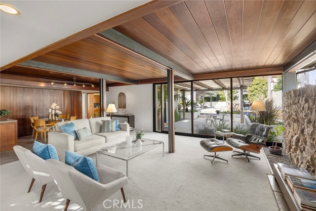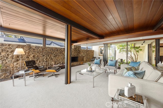 This architecturally significant midcentury modern treasure stands as both sanctuary and statement. Designed in 1955 and inspired by iconic architects, it captures the essence of modernist design-where nature, architecture, and lifestyle become one. From the moment you pass the private wall, the home reveals itself as a retreat of warmth and intention. Redwood ceilings and a centerpiece fireplace anchor the interior, while walls of glass frame sweeping courtyards bathed in natural light, turning each space into a living work of art. Timeless craftmanship and thoughtful updates elevate the experience. Beyond the walls, the private vignettes connect living spaces to nature, inviting sunsets, starlit gatherings and the quiet rhythm of life. The sparkling pool offers serenity without pretense. Set on nearly 15,000 square foot lot, this home is a rare architectural treasure. Here you are part of a community that values privacy, design, and the spirit of California modernism. North Tustin is not just a neighborhood, but a place where identity is rooted in harmony with the land, timeless style, and the bounds of neighbors who appreciate both beauty and authenticity. In a world of ordinary, this is extraordinary. A one-of-a-kind home that will speak not only to your sense of style, but also to your sense of belonging. Incorporated in the lot size is ample space for another building, home addition, ADU, RV parking, garage ... endless possibilities.
