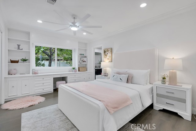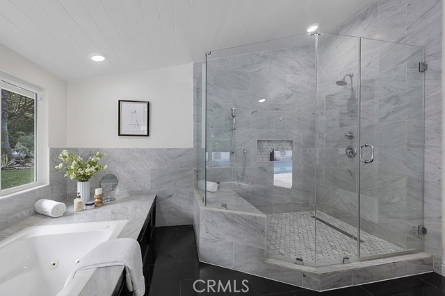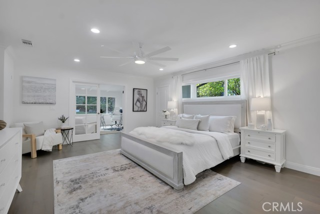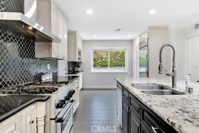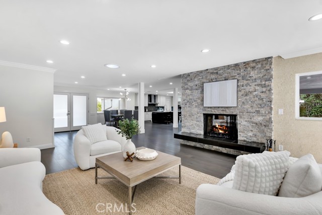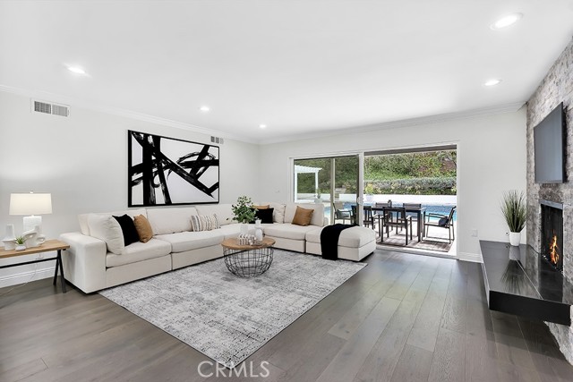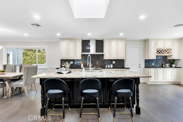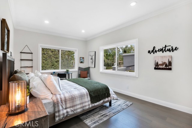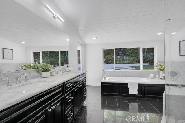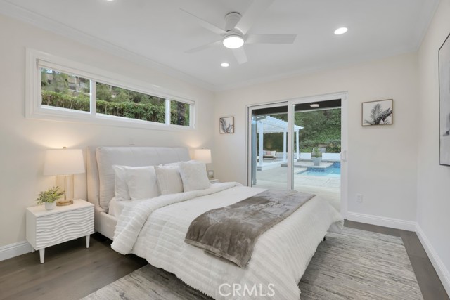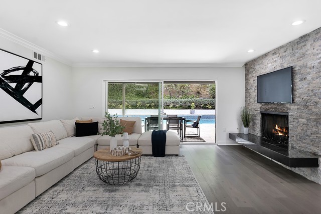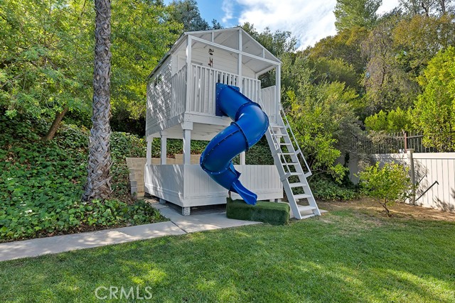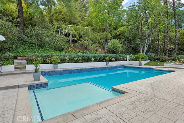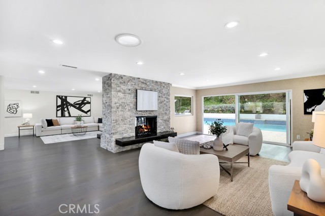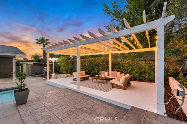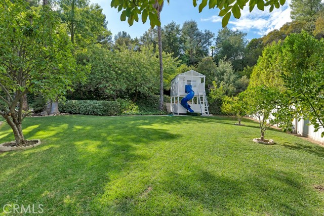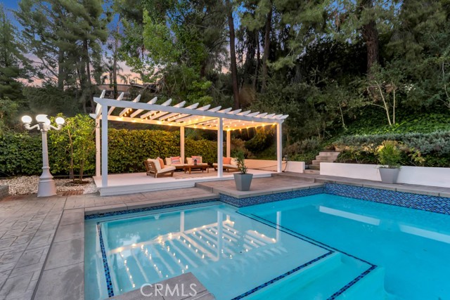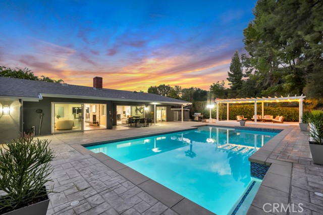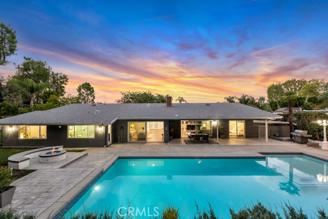 Welcome to your private sanctuary tucked away on a peaceful cul-de-sac in the highly sought-after hills of Tarzana. This luxuriously renovated single-story home offers 5 bedrooms, 4 bathrooms, and 3,386 sq ft of refined living space on a sprawling 21,529 sq ft lot designed for both relaxation and entertaining. Step inside to experience the seamless flow of this modern open-concept layout, filled with natural light and sophisticated finishes. The heart of the home is the designer kitchen, featuring custom cabinetry, a striking black arabesque tile backsplash, professional-grade stainless steel appliances, and an oversized granite island perfect for gatherings. The kitchen opens to expansive living and dining areas anchored by a floor-to-ceiling double-sided stone fireplace, creating an inviting ambiance for both casual and formal entertaining. Retreat to the spacious primary suite, complete with a walk-in closet, spa-inspired ensuite, and a private bonus room ideal for a home office, gym, or nursery. Each bedroom is thoughtfully positioned for privacy and comfort, including a guest suite with its own bath. Outside, experience your very own resort-style paradise. The sparkling pool with a Baja shelf invites you to unwind under the California sun, while the covered patio and string-lit pergola offer the perfect setting for al fresco dinners and weekend gatherings. A large grassy lawn provides space for kids or pets to play, complete with a charming 2-story treehouse and slide, while a hillside viewing deck delivers breathtaking sunset views over Tarzana's rolling landscape. Blending luxury, comfort, and tranquility, this home perfectly captures the essence of Southern California living — a rare find in one of Tarzana's most desirable neighborhoods. Close to premier shopping, dining, and top-rated schools, this property truly has it all.