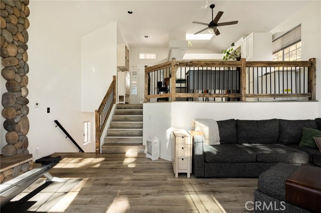 Be in your mountain home for the holidays! Beautifully maintained 3-bedroom, 2.5-bath Rim Forest home, thoughtfully built by Kenney Anderson. Ideally situated just minutes from Hwy 18, this commuter-friendly property offers the perfect blend of mountain serenity and everyday convenience. Step inside to discover soaring ceilings, fresh interior paint, new wood-style vinyl flooring, and an abundance of natural light. The open-concept layout connects the kitchen and dining area to the spacious living room — perfect for entertaining or unwinding with peaceful treetop views. Wake up to breathtaking morning sunrises through the large back windows or from the expansive rear deck, where you can enjoy your coffee surrounded by nature. Additional highlights include some newer dual-pane windows, Hardybacker siding on the rear, a newer water heater and furnace, and a brand-new roof for added peace of mind. Multiple decks, wide stairways, generous storage, and parking for four complete this move-in ready mountain retreat — a true gem in the heart of Rim Forest.