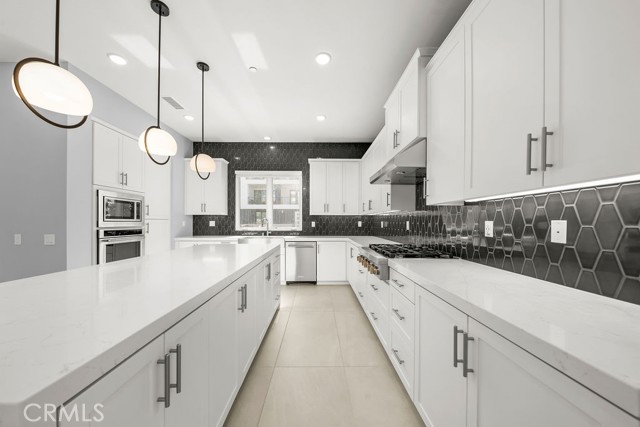 Experience refined modern living in this newly built 2023 masterpiece, perfectly positioned in one of Tustin's most desirable new communities. This four bedroom, four bath luxury residence spans approximately 3,110 square feet of thoughtfully designed living space, blending architectural sophistication with everyday functionality. Step inside to discover a spacious open concept layout drenched in natural light, chef inspired kitchen stands at the heart of the home, showcasing custom cabinetry, quartz counters, a generous island, and stainless steel appliances. Upstairs, the primary suite provides a luxurious private retreat, featuring a spa like bathroom with dual vanities, a soaking tub, walk in shower, and a generous walk in closet designed for modern living. The highlight of the home is the third floor, an elevated sanctuary complete with a private suite bedroom, a large bonus room, and a covered deck capturing breathtaking sunset views, ideal for entertaining guests or simply enjoying a quiet evening under the stars. Every detail has been elevated with convenience and comfort in mind, including a fully integrated solar energy system, automatic remote-control blinds, an electric vehicle charging station, and a washer and dryer included with the sale. With an emphasis on smart design, energy efficiency, and contemporary luxury, this home offers a lifestyle that's both refined and functional. Enjoy the convenience of living just steps from The District at Tustin Legacy, where you'll find Whole Foods, Costco, Target, premier restaurants, and boutique shops, as well as close proximity to top rated schools, John Wayne Airport, and the best of Orange County's entertainment and coastal destinations. Perfectly merging luxury, technology, and location, this residence represents the modern California living, and built for those who appreciate the finest in design and lifestyle.