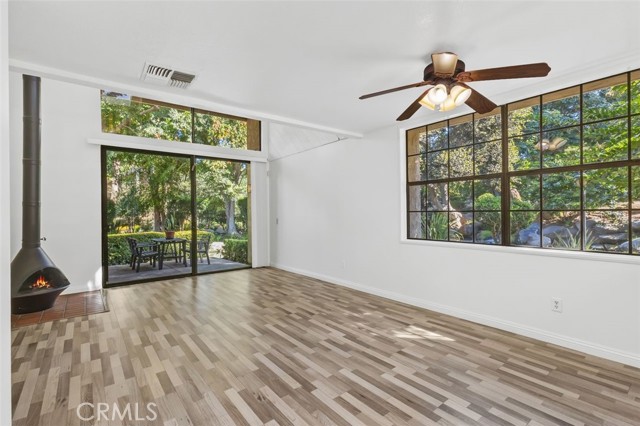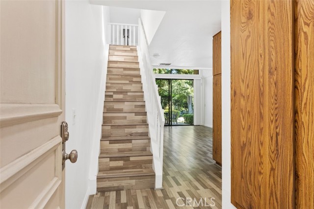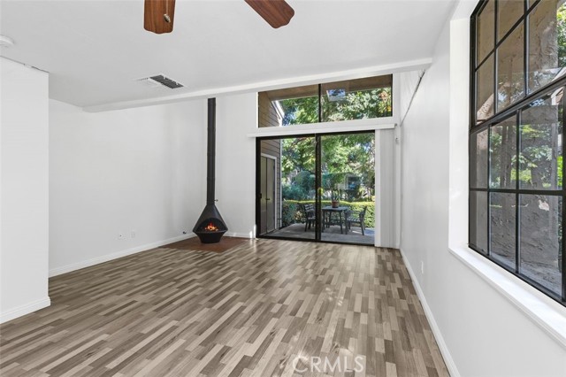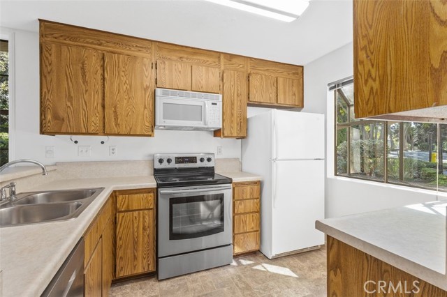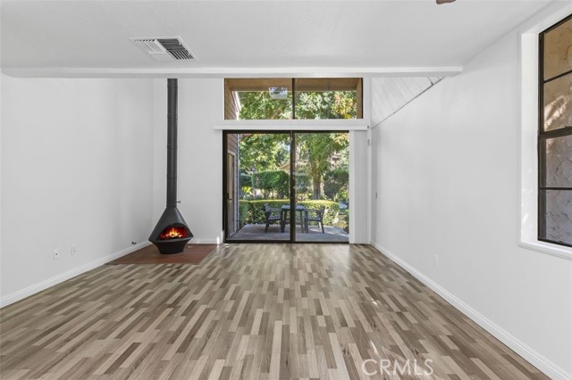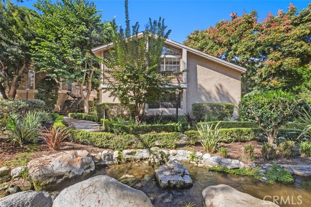 BRIGHT, CORNER-LOT TOWNHOME WITH NO ONE ABOVE OR BELOW – Premium end-unit with stunning lake views and a desirable open layout. Tucked into the tranquil, tree-lined community of The Lakes, this corner-lot home shares only one wall and enjoys no one above or below. Step inside to find a freshly painted interior filled with natural light, vaulted ceilings, and a flexible open layout that lives much larger than expected. The spacious living room features wood laminate flooring, dramatic vaulted ceilings, and a stylish Swedish fireplace perfect for cozy evenings. Enjoy peaceful mornings on your rear patio with no rear neighbors, just serene views of the lake, waterfalls, and lush landscaping. Upstairs, the entire level is dedicated to the lofted bedroom suite with vaulted ceilings, walk-in closet, and bathroom with dressing area, skylight, and elevated lake views. Downstairs includes a dedicated laundry room off the patio, ceiling fan in the dining area, and a thoughtfully updated HVAC system and new water heater. The kitchen is appointed with a stainless steel stove, dishwasher, double sink, and plenty of storage. This rare offering is moments away from one of the two community pools and surrounded by beautifully landscaped walkways, footbridges, koi ponds, ducks, snowy egrets, and blue heron. HOA dues include water, trash, two pools, spas, tennis courts, and serene nature throughout. Conveniently located near shopping, restaurants, Starbucks, freeways, and Hicks Canyon and Jeffrey Trails. No Mello-Roos and a low tax rate. This is one of the best settings in the neighborhood. You are going to love living here!