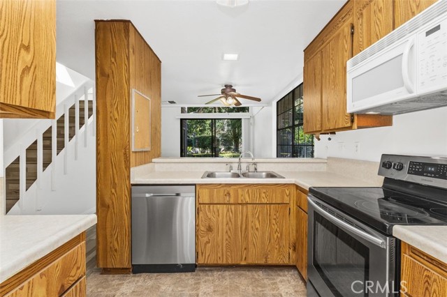Appliances: Dishwasher, Electric Oven, Electric Range, Electric Stove, Free Standing Range, Garbage Disposal, Gas Water Heater, Microwave, Refrigerator, Water Heater Unit