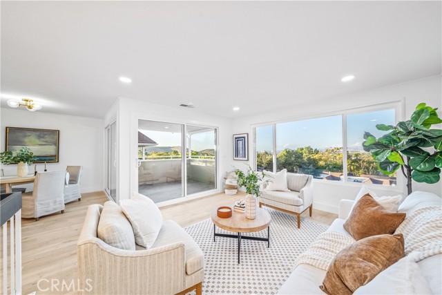 Showcasing stunning panoramic city lights, hills and mountain views is this completely renovated beauty that is situated as an end unit on a quiet, best in the complex street. Wait until you see this one! Enter through a private patio alcove into a light and bright charmer that really takes your breath away. With great light from all new view windows, warm and bright designer paint, and an abundance of living space you are drawn into a truly serene setting. Immediately off the entry is a completely redone guest bath and beyond is the living and dining room great room that has new dual sliding doors out to the expansive view patio. With ample room for a patio table and chairs this is the perfect spot to enjoy a morning cup of coffee or an evening glass of wine or cocktail while taking in the enchanting views. Adjoining the dining room is a fully renovated chef's kitchen which features all new quartz counters, all new stainless-steel appliances including a brand-new electric range, a matching brand-new microwave range hood and a brand-new dishwasher. With ample prep and storage space, and light from a large window over the sink with views out to the entry alcove, this is where the magic happens. Set up as a reverse floor plan, to take advantage of the stunning views, the bedrooms can be found downstairs, and one has a large sliding door out to a lower private patio and a renovated ensuite. The other is light and bright with a large window and a fully updated guest bath with a step-in shower completes the living spaces. With all new flooring and paint, new windows and sliding doors, recessed lighting and everything completely redone, this is the one! There is an attached direct access single car garage, and the entry alcove is set up with a large barn door style garage door making it a second dedicated parking spot. The views alone should sell this home and with everything done, two stunning bedrooms, and 2 car parking, what more could you ask for at this price point? Welcome Home!