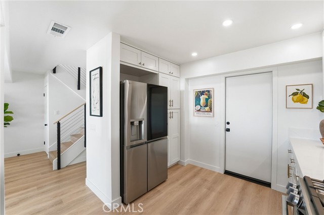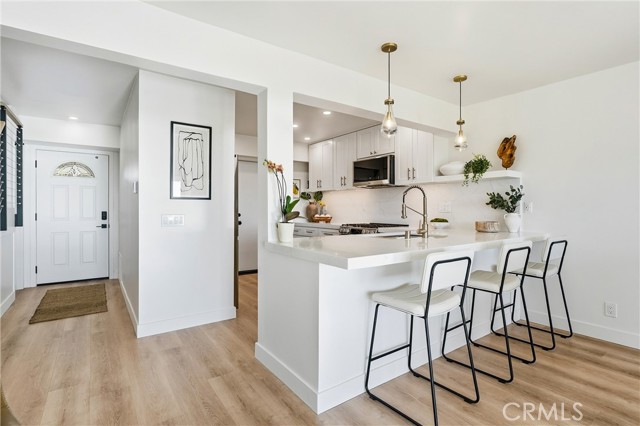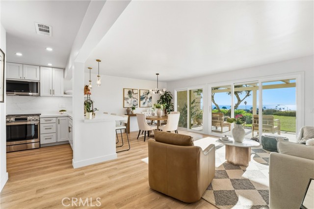Now offering a limited-time 2-1 rate buydown opportunity — see supplement for details. One of the most compelling remodeled ocean-view opportunities in Presidential Heights II. Uninterrupted sit-down panoramic ocean views define this fully remodeled two-bedroom attached single-family home in one of San Clemente's most desirable coastal communities. From the gated courtyard entry to the open-concept living space, the home was thoughtfully redesigned to maximize natural light, flow, and the expansive horizon views that anchor the property. The ocean becomes a true extension of the living area, with dramatic sunsets visible from both the main living space and the primary bedroom. The chef's kitchen is exceptionally spacious and features soft-close custom cabinetry, floating shelves, new LG appliances, a Kraus workstation sink with champagne touchless faucet, dimmable lighting, and generous storage. Both bathrooms have been fully remodeled with contemporary finishes, anti-fog mirrors, and premium Kohler fixtures. High-end upgrades throughout include luxury vinyl plank flooring, smooth finished walls, upgraded doors and hardware, designer lighting, ceiling fans, and a modern cable stair system that enhances the open feel. For qualified buyers, seller is offering a temporary 2-1 rate buydown incentive (subject to terms and deadline). This strategic financing opportunity may significantly reduce initial monthly payments — see attached supplement for full details. The community pool and spa are just steps away, and the HOA includes water and fire insurance. Minutes from downtown San Clemente, beaches, restaurants, boutiques, and world-class surf at Trestles, this turnkey property offers remodeled coastal living with panoramic ocean views — now paired with a rare structured financing incentive.