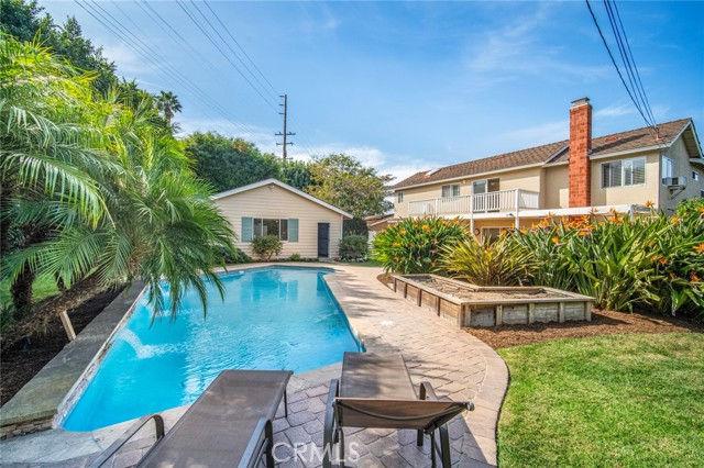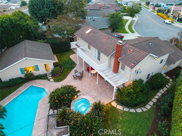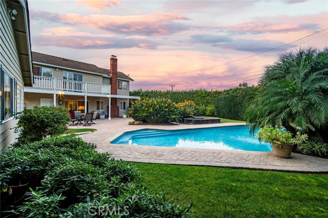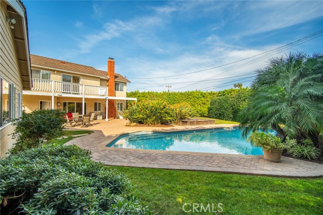 Truly One of a Kind! Exceptional Property with Lots of Room to Roam ~ Resort Type Living on a 12,100 Square Foot Lot ~ Entertainer's Yard with with Pool and Spa ~ Entire large pool is 4' depth to allow for lounging or swim laps ~ Very Private and Peaceful Setting ~ Two 2 Car Garages ~ Front Garage has a pass thru door or driveway access from side of front garage for cars to access back oversized garage (1076 Square Feet) ~ 2nd Garage is at the back of the lot next to the Pool ~ Perfect for Car Enthusiasts/Home Office/Pool House/Workshop/possible ADU? This property has been Beautifully Remodeled including a 2nd Story Addition making it a Four Bedroom Four Bathroom Home ~ Upstairs windows allow for sweeping vistas ~ Large Primary Suite with Balcony overlooking Picturesque Backyard ~ Fabulous Bath With Dressing Area & Walk In Closet ~ Two Bedrooms Downstairs including One With a Private Bath ~ Spacious Laundry Room with Access to side yard ~ Hardwood Style Tile Floors ~ Plantations Shutters ~ Beautifully Updated Throughout Including a Charming Front Dutch Door as you Enter.