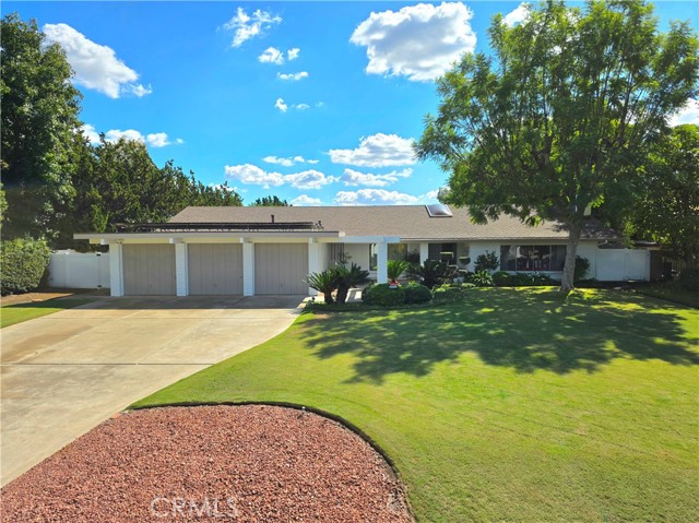 Welcome to your private sanctuary in one of Villa Park's most coveted enclaves. Nestled along prestigious Patrician Drive, known as the "Riviera" of Villa Park, this remarkable single-story mid-century modern estate offers the perfect blend of timeless design, California serenity, and endless possibilities for entertaining. Set on an elevated near three-quarter acre, this single story property boasts lush green lawns, vibrant landscaping, and undeniable curb appeal. Inside, nearly 3,000 square feet of living space unfolds with natural light and true single story flow. Vaulted ceilings soar above the living, family, and spacious primary room, creating a sense of airy expanse and openness. Floor to ceiling brick hearth fireplaces add warmth and appeal to both the living room and family room. Expansive views from the dining room, recently remodeled kitchen, primary suite and family rooms reflect comfort and contemporary elegance. Three additional bedrooms and 2 bathrooms can accommodate family, guests, a home office, Pilates studio; virtually anything desired. Step outside and feel the magic of true California luxury living — beautifully landscaped expansive grounds, covered patio, sparkling pool glistening under the sun, regulation-size tennis court complete with lights ready for tennis matches or conversion into pickleball courts, a basketball court, or many other endless possibilities. The outdoor living space includes several open entertaining spaces designed for hosting unforgettable gatherings with friends and neighbors. From sunrise swims to twilight get-togethers beneath the stars, every moment here feels like a dreamy escape. With serene views of the mountains, city lights, and the Santiago Creek Basin and trails, this home captures Villa Park's natural beauty and prestige at every turn. A three-car garage with epoxy flooring, RV parking, and solar energy add convenience and efficiency to its long list of luxuries. Whether you're seeking a peaceful retreat, an entertainer's dream, or a canvas to create your own masterpiece, 18746 Patrician Drive is where your next chapter begins — a place where elegance, comfort, and possibility meet.