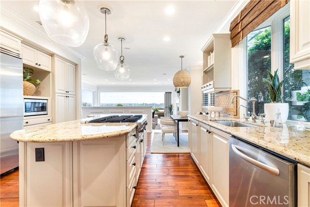 This beautiful CLIFFSIDE home in the Castaways guard-gated neighborhood offers a "front row", spectacular view of Newport bay. The oversized lot and yard is one of the largest on the cliff allowing for a full pool together with a spa and fire pit. LaCantina folding doors create an indoor/outdoor coastal living experience and is as good as it gets. Beautiful kitchen with center- island includes all stainless steel appliances, including SubZero. The spacious primary bedroom also offers include view's with fireplace and balcony. The Castaways community is one of Newport's most coveted neighborhoods, which allows for beautiful walks, hikes, biking and is easily walking to coffee, restaurants, and stores.